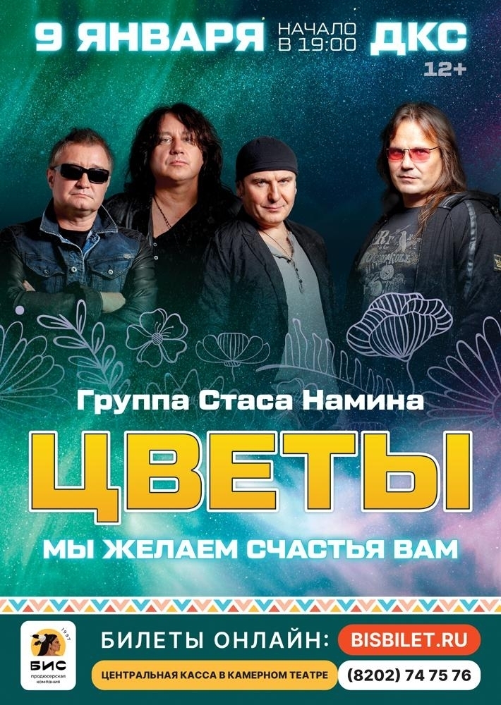 19:00 – концерт группы Стаса Намина «Цветы» (12+) в ДК «Строитель» с программой «Мы желаем счастья вам».