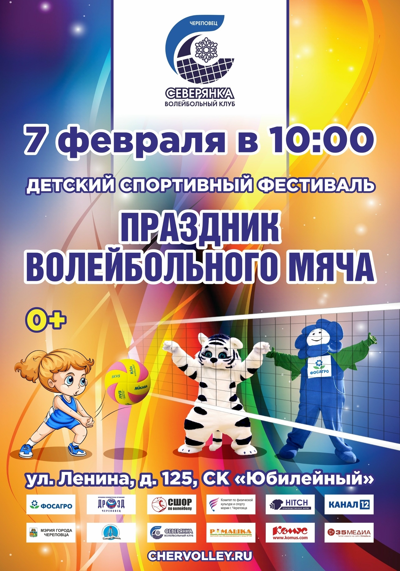 • 10:00 – детский спортивный фестиваль «Праздник волейбольного мяча» (0+) в СК «Юбилейный» (Ленина, 125).