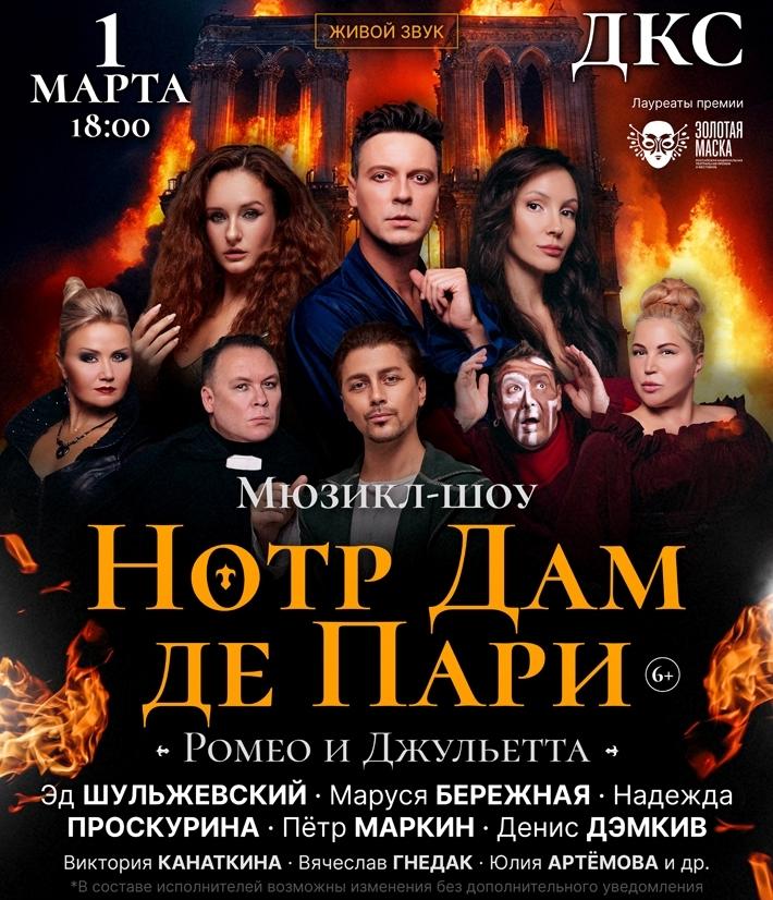- 18:00 — мюзикл-шоу «Нотр Дам де Пари» и «Ромео и Джульетта» (6+). Костюмированная программа в живом исполнении. ДК «Строитель».