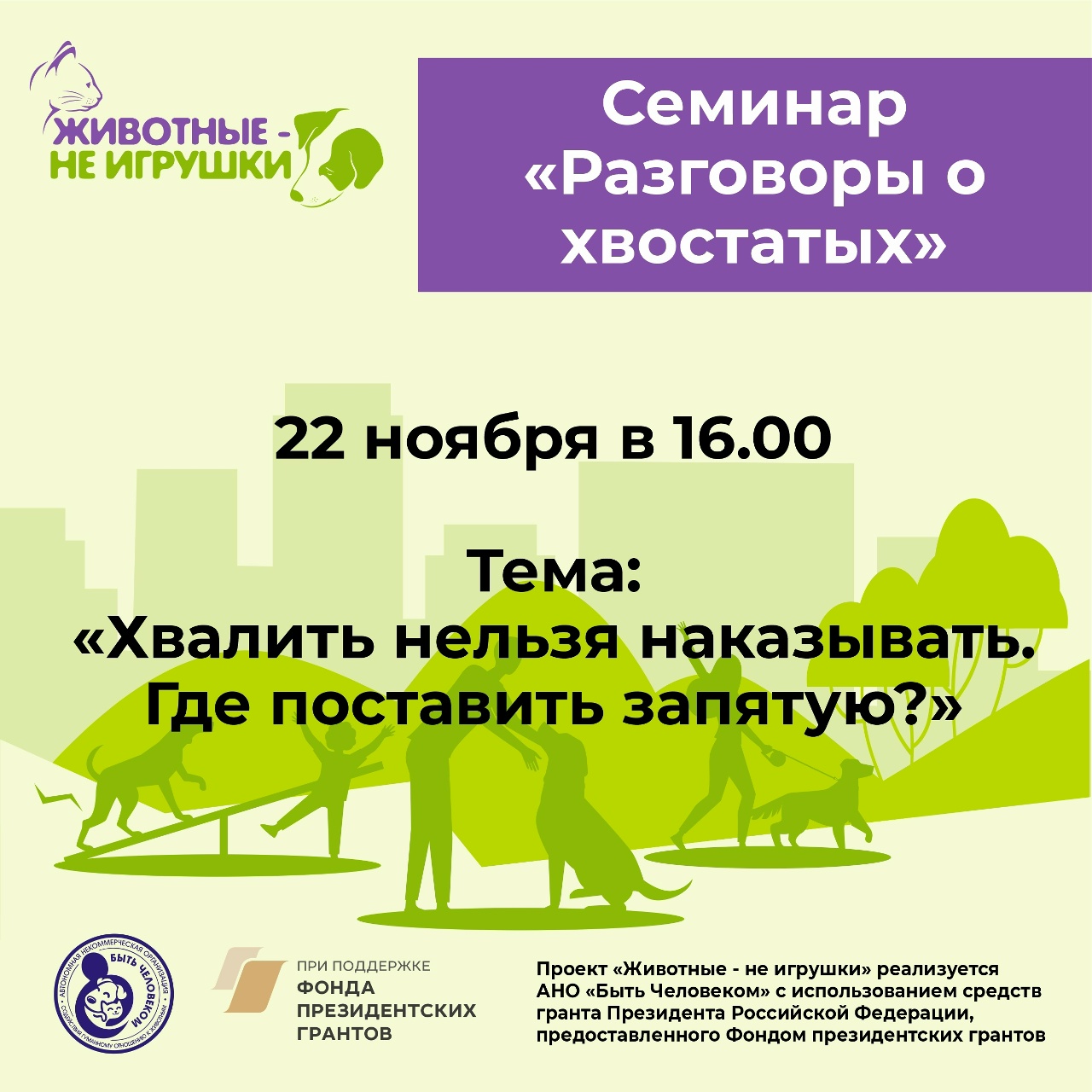 В 16:00 в Зооцентре на Московском пр., 49а пройдёт семинар о воспитании собак из цикла «Разговоры о хвостатых» (12+) в рамках проекта «Животные – не игрушки».