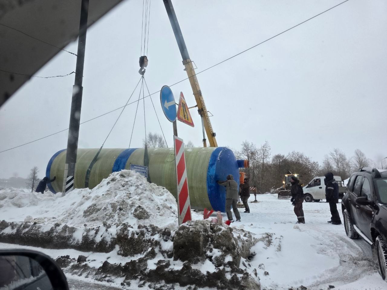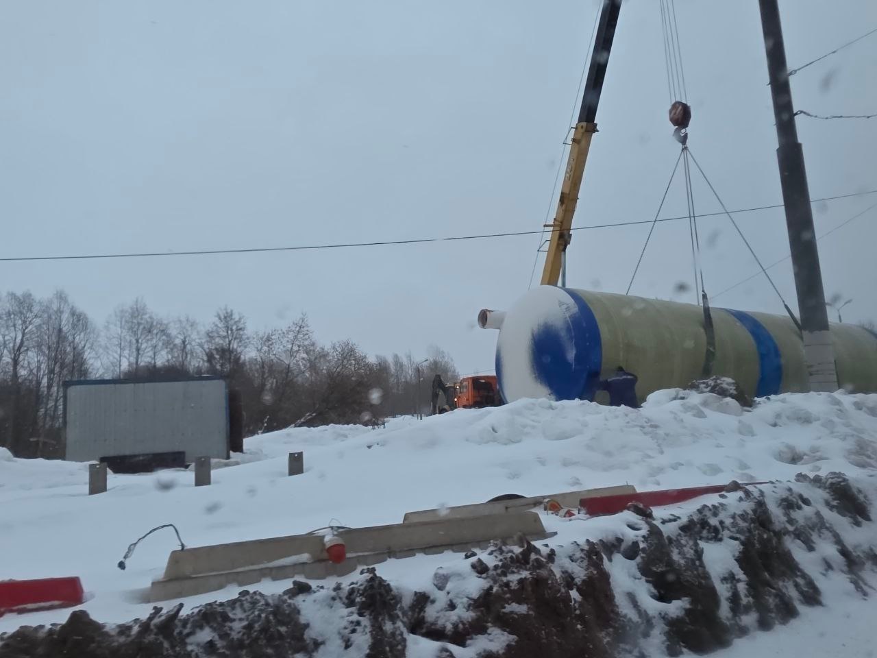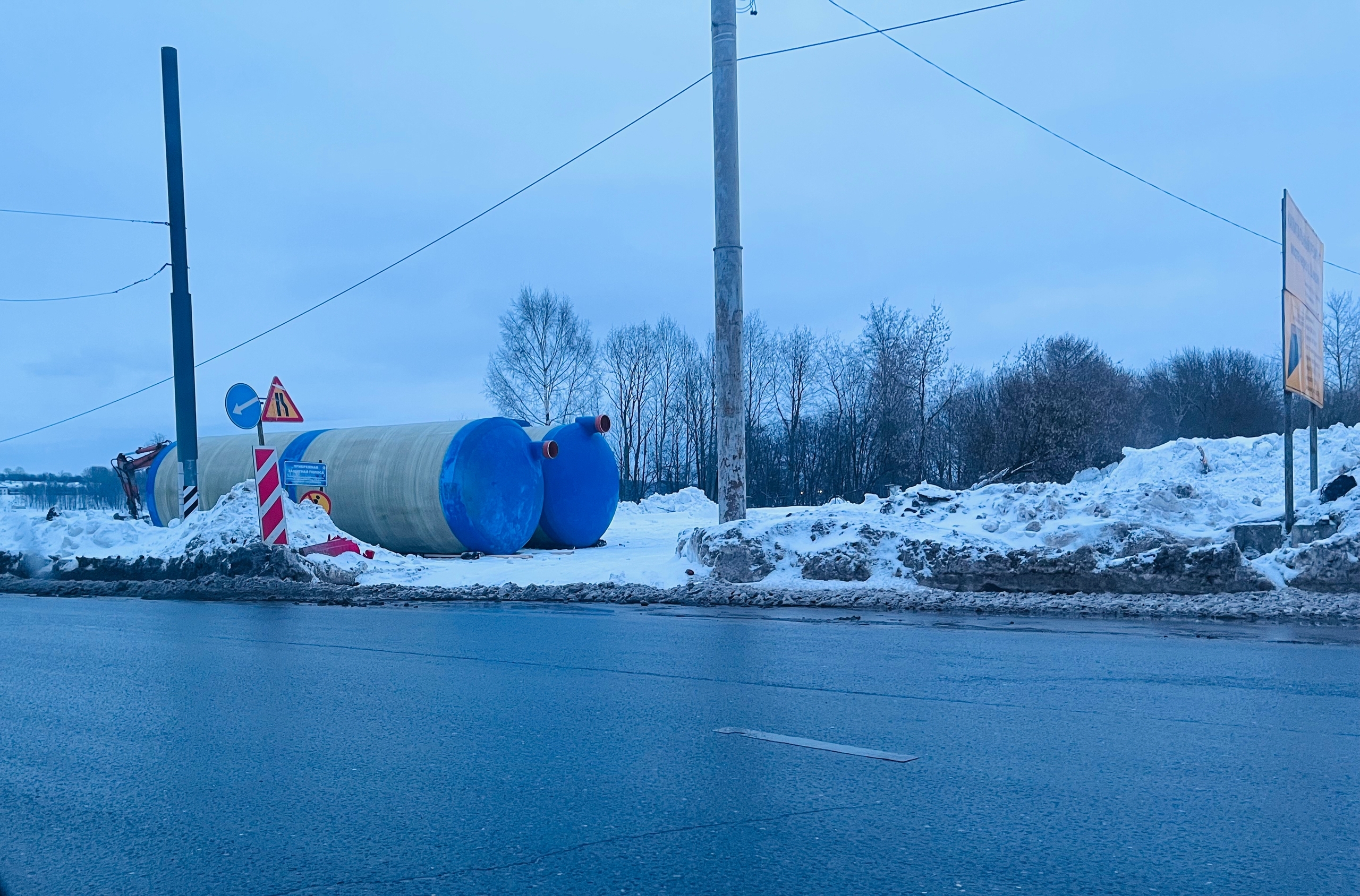 Кроме этого, установки для очистки сточных вод доставили к Октябрьскому мосту. Это один из заключительных и важных этапов ремонта переправы. Сейчас рабочие готовятся строить то, чего не было на объекте никогда раньше, — локальные очистные сооружения. Грязь и реагенты с дороги больше не попадут прямо в Шексну. Все стоки будут проходить через систему фильтров. Сейчас строители готовят котлован под оборудование.