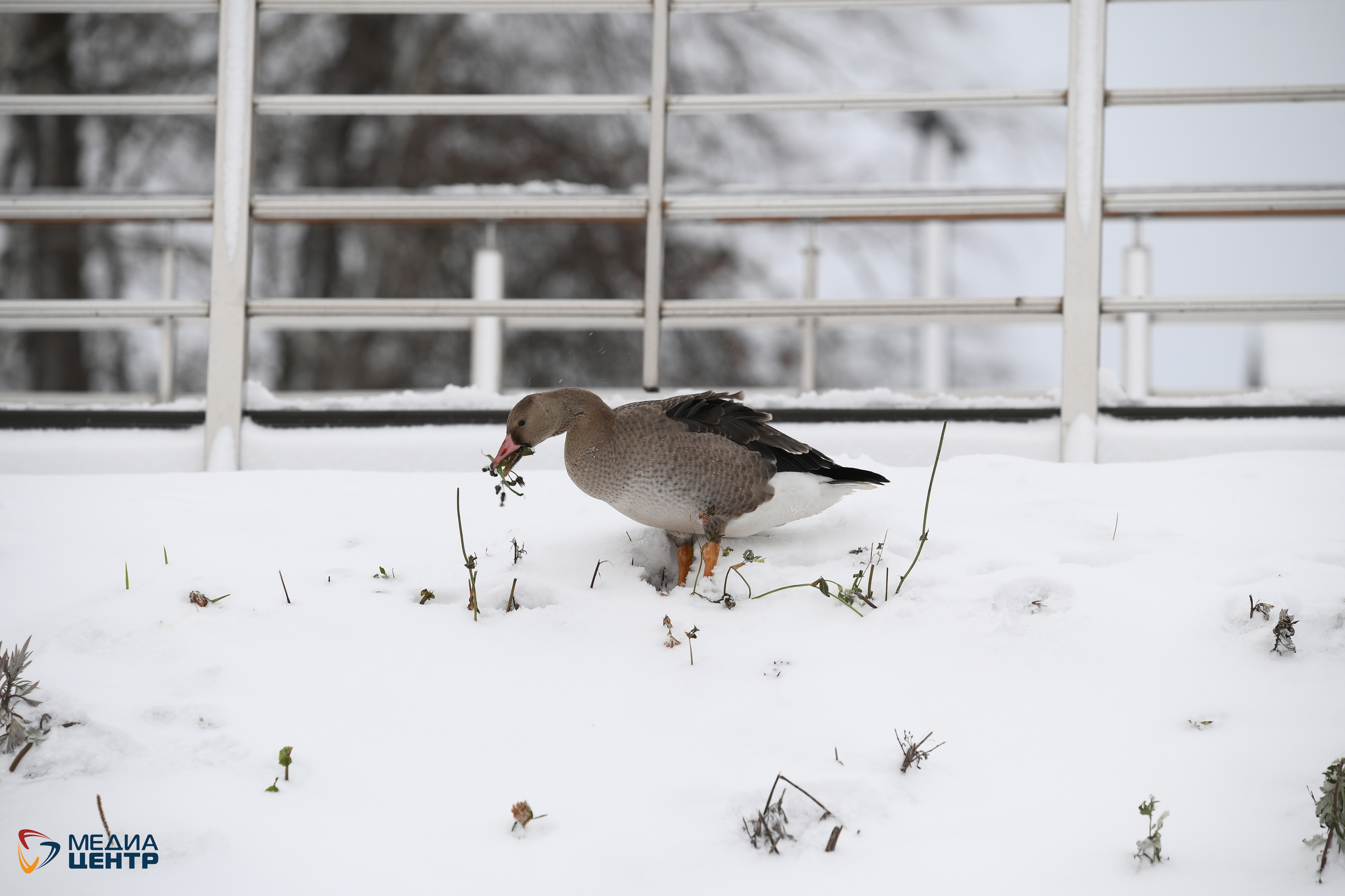 Осень в нашем городе выдалась теплой, однако зима, как это часто бывает, наступила неожиданно. Неделю назад город укрыло снегом — внезапно не только людей. В районе Александровской набережной жители заметили гуся. По всем правилам птица давно должна была улететь на юг, но почему-то задержалась. Снег ее как будто бы не слишком смутил, но очевидно, что берег Шексны в конце осени не лучшее место для перелетной птицы, особенно в предстоящие морозы. Впрочем, как утверждают череповчане в соцсетях, зимовать гусь на набережной не планировал. Его задержала любовь.