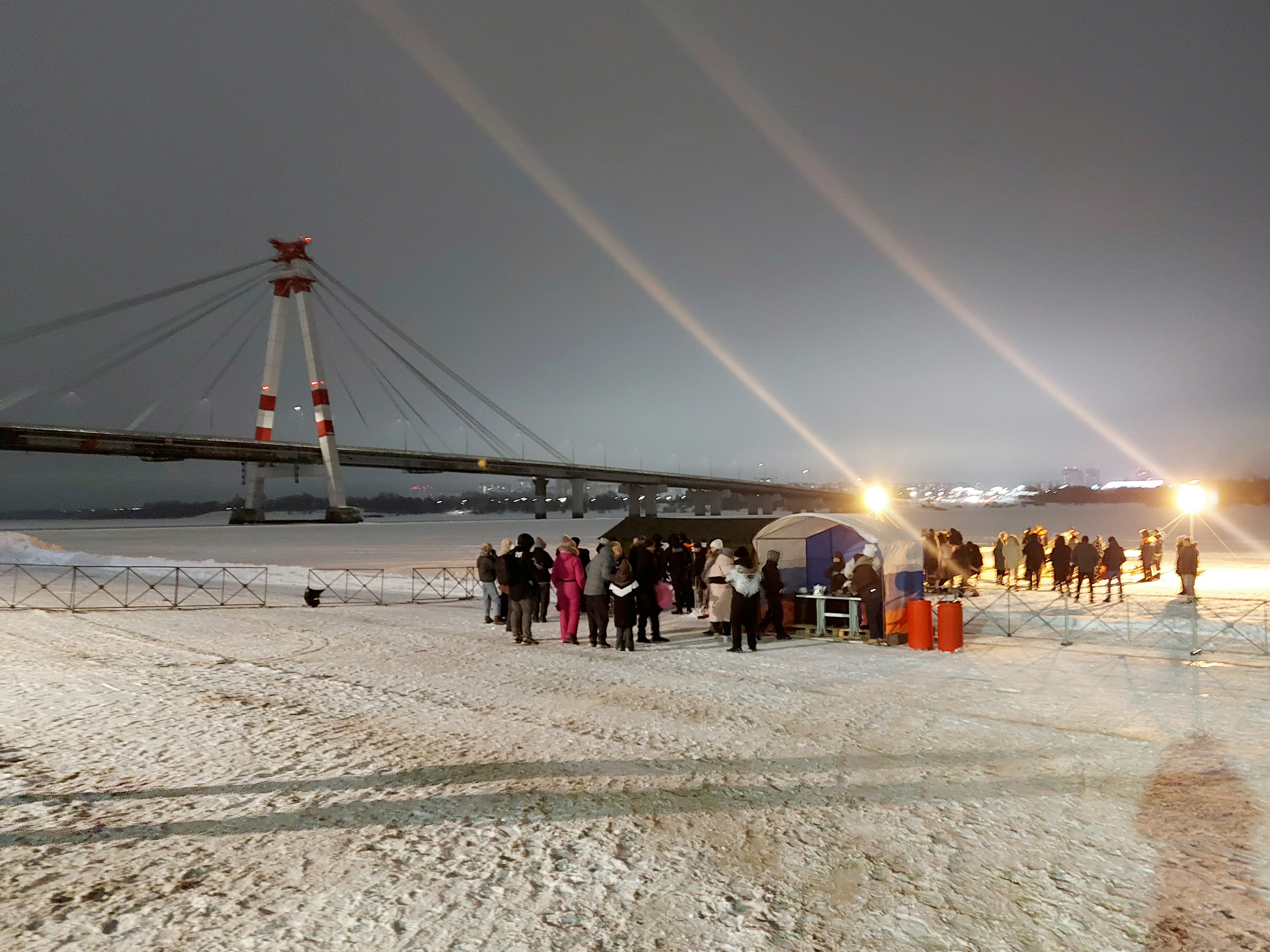 В Череповце продолжается празднование Крещения Господня. Сейчас в городе работает одна из главных традиционных площадок для купаний — у Лыжной базы.