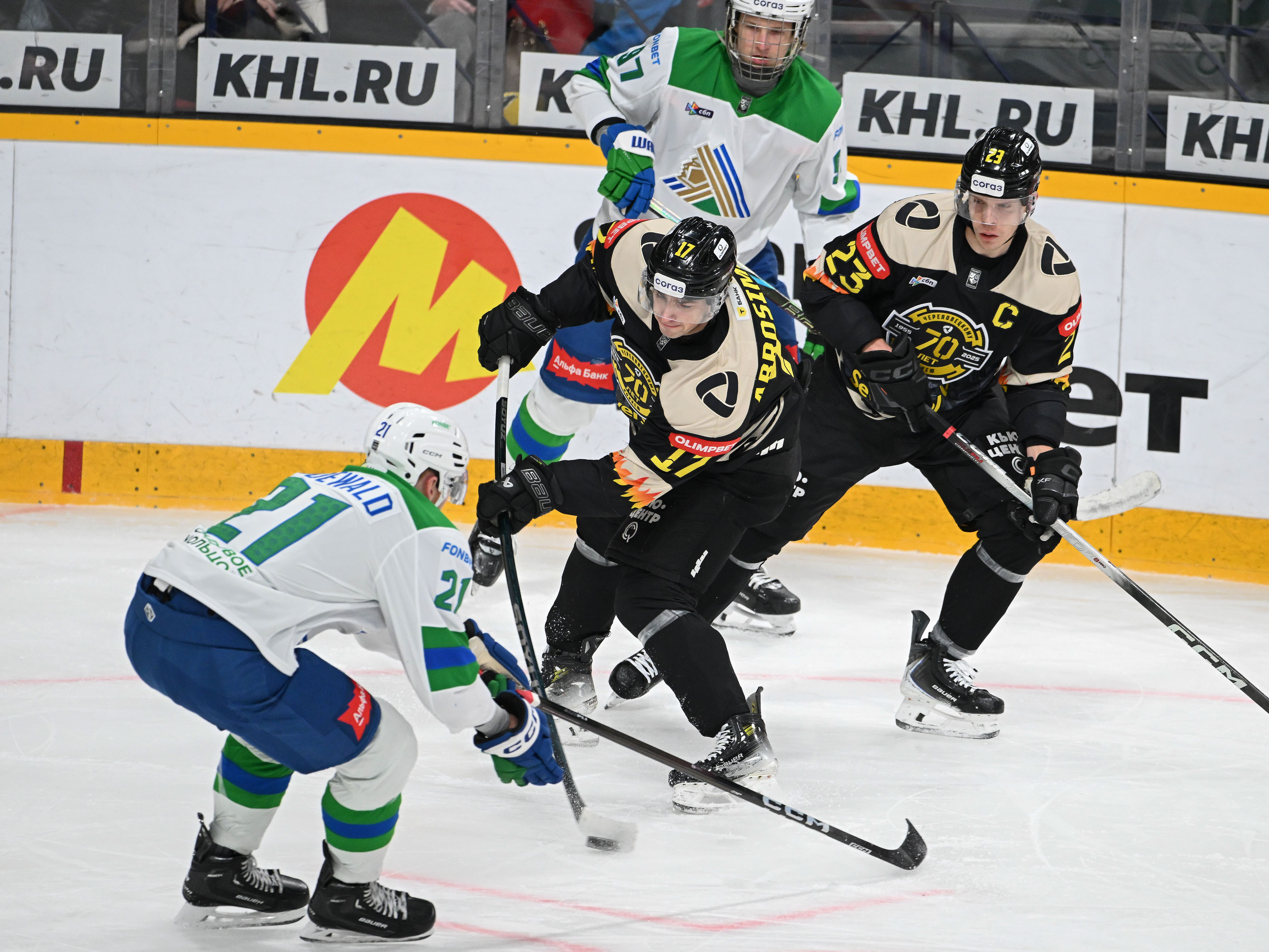 Матч между «Северсталью» и «Салаватом Юлаевым» проходил в день 70-летия череповецкого хоккея. Череповчане вышли на игру в свитерах, в которых соединилась клубная форма разных эпох истории команды. Но порадоваться победе не получилось.