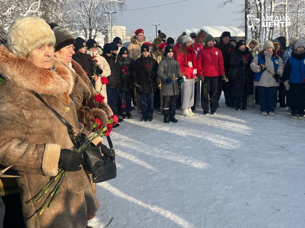 В Череповце ежегодные памятные мероприятия прошли в нескольких местах. В 11 часов утра на Мемориале Воинской Славы собрались блокадники, ветераны, сотрудники силовых ведомств, общественники, школьники, кадеты и юнармейцы.