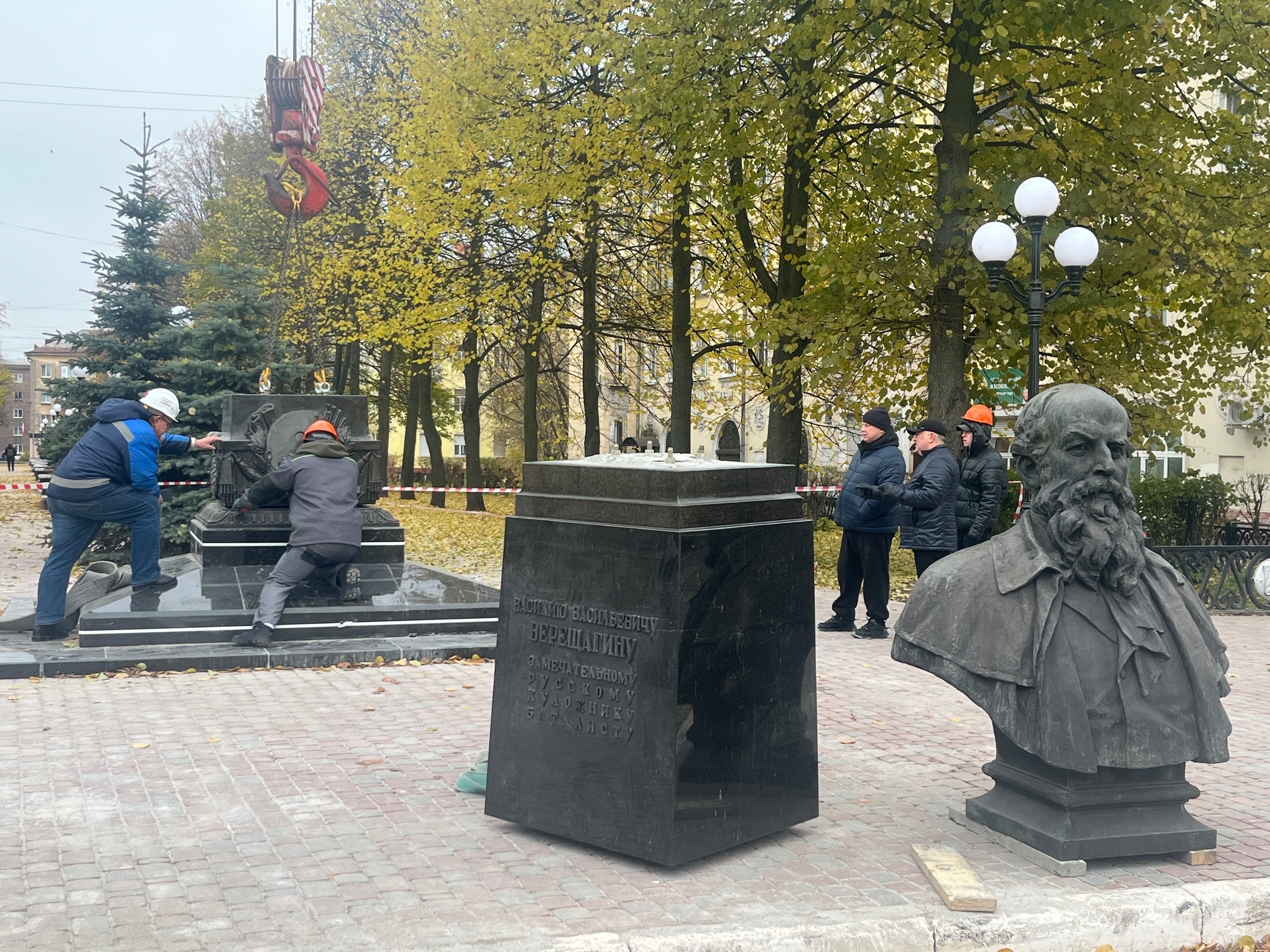 В сквере сейчас идет ремонт, и провести церемонию там было бы затруднительно. Несколько недель отсутствовал на своем месте и сам бюст, который отправляли на реставрацию. Впрочем, в канун открытия Верещагинских дней изваяние вернулась на свое историческое место, которое оно занимает почти 70 лет. У бюста восстанавливали недостающие детали, убирали сколы, шлифовали его, реставрировали надпись.