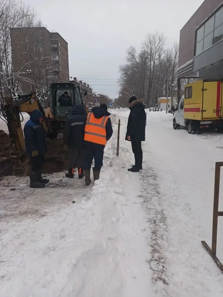 «Утечка на ул. Ломоносова, 17а, устранена, водоснабжение восстановлено. Выполняем работы по обратной засыпке.