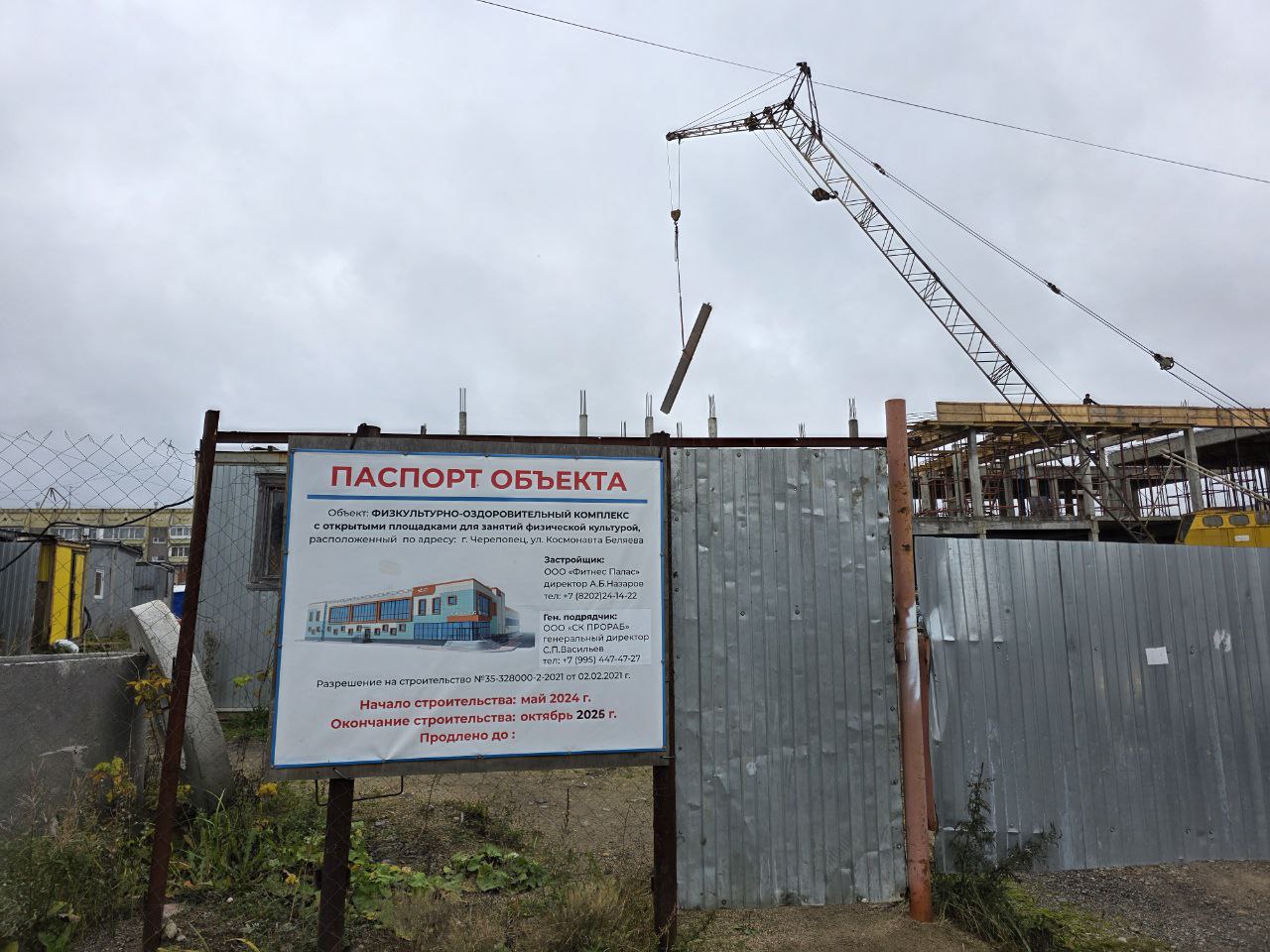 На стенде с паспортом объекта дату сдачи ФОКа - 2025 год - маркером исправили на 2026-й.