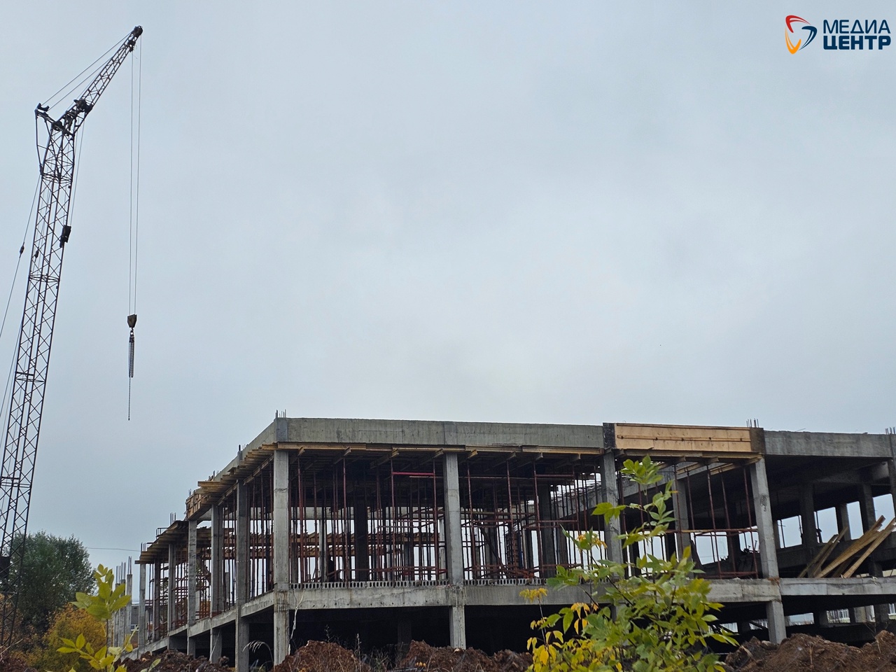 На сегодняшний день на объекте выполнены работы «нулевого» цикла и ведутся работы по монтажу каркаса здания.