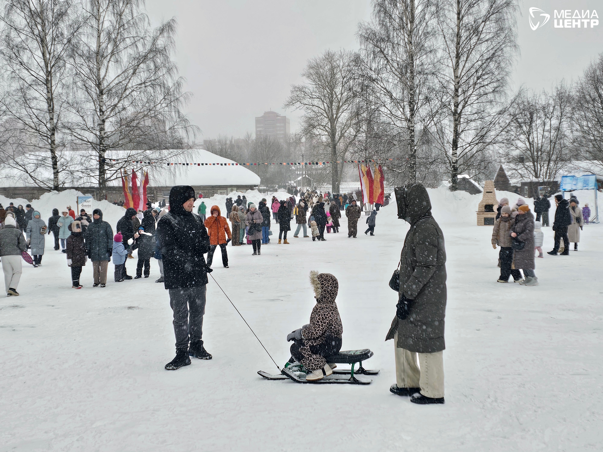 Погода в этот день решила проверить череповчан на прочность. К полудню разыгралась февральская метель. Зима явно не хотела уступать место весне. Но это не остановило любителей народных гуляний. Утром на Лыжной базе для спортивных семей устроили конкурсы и эстафеты. А к полудню основные площадки заполнились людьми.