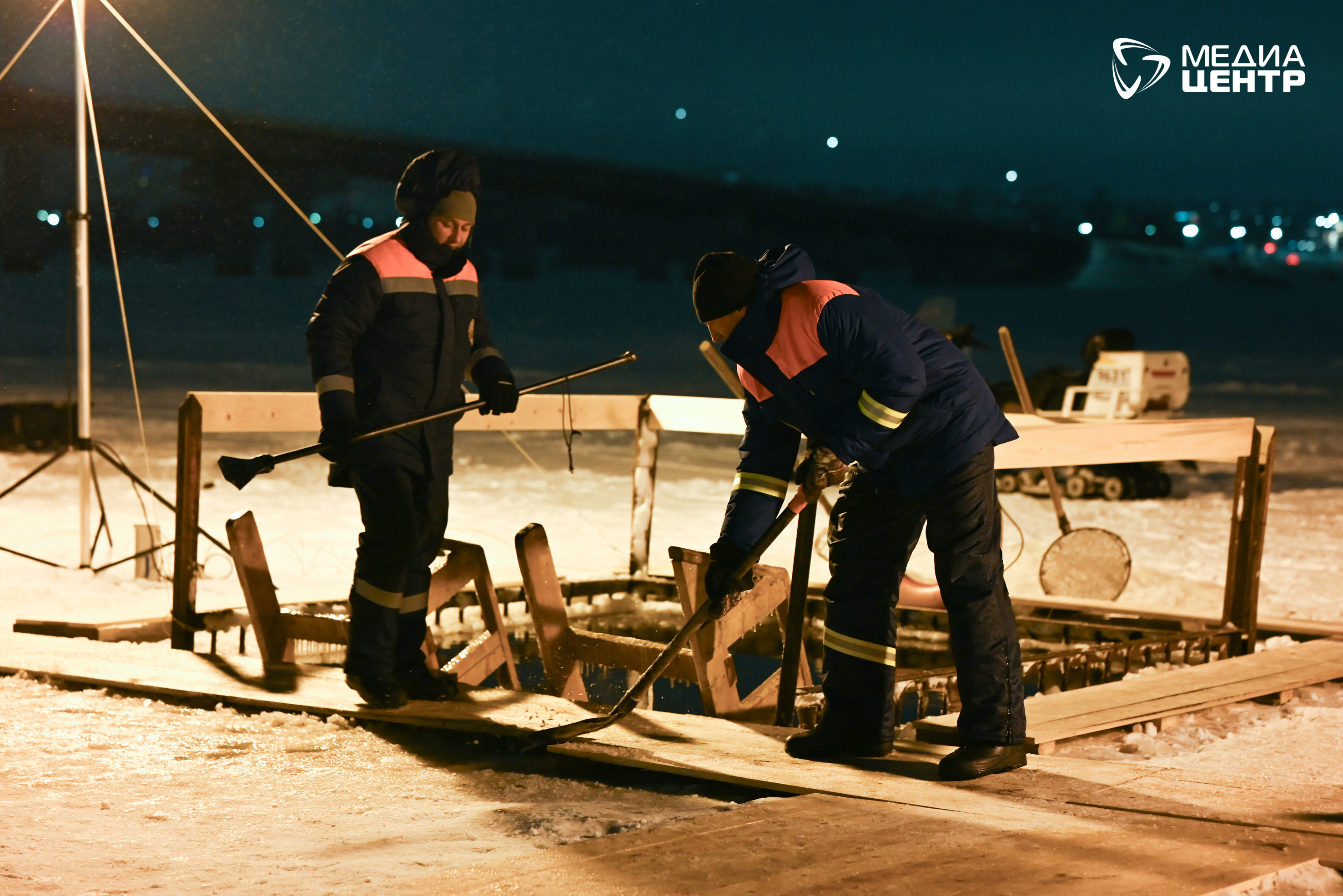 На лыжной базе оборудовали и освятили две проруби (иордани). Для посетителей установили отапливаемый шатер, работали платные теплые раздевалки. После купания желающих поили бесплатным чаем. Дежурили спасатели и медики.