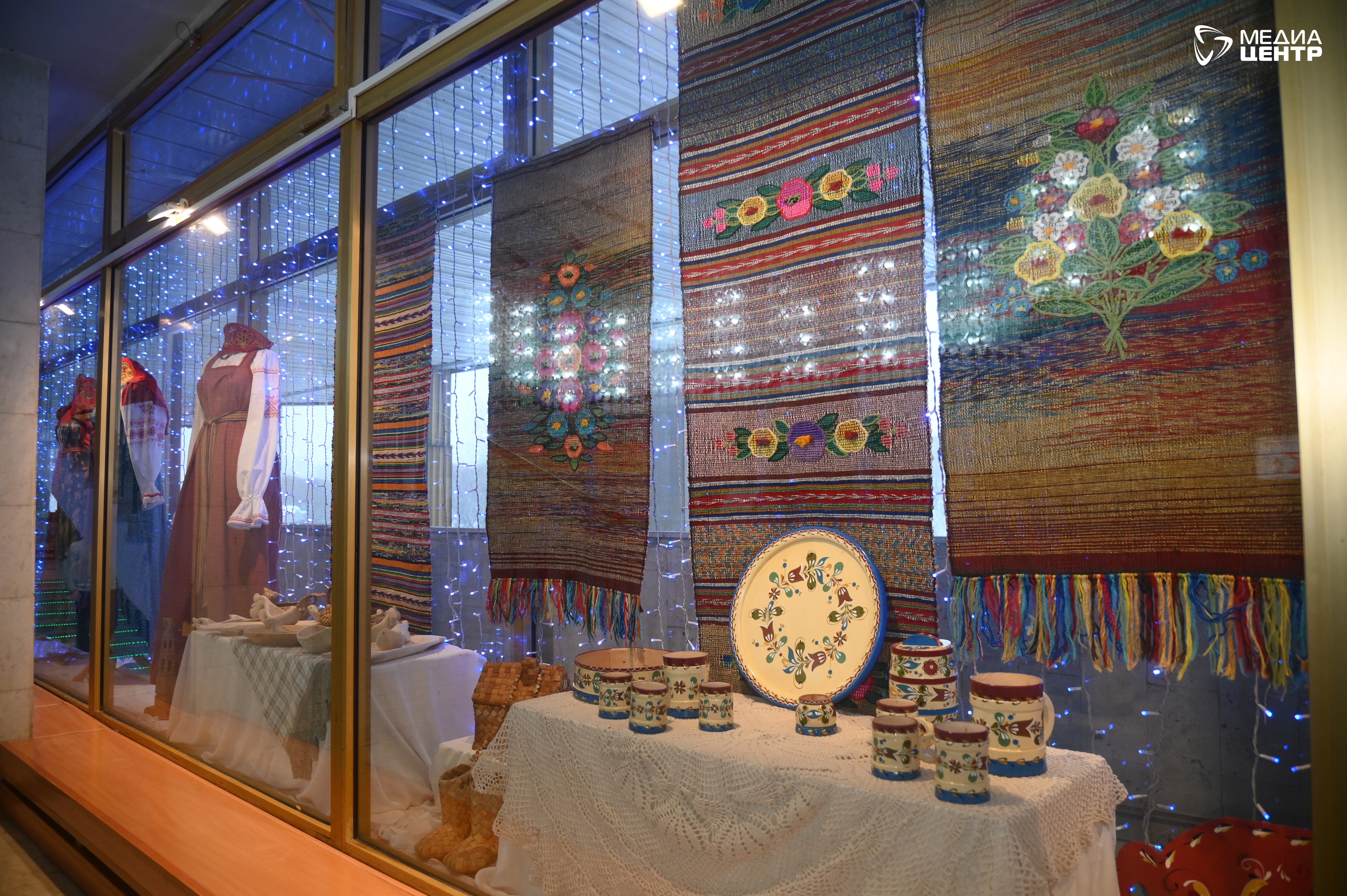 Также в экспозиции представлены изделия работающих при центре студий «Народный костюм», «Кружавушка» (занимаются кружевницы с 9 до 86 лет), «Роспись по дереву» и других.