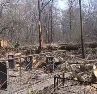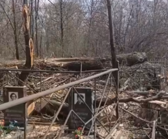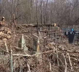 По предварительным данным, причиной такого «погрома» стала неаккуратная рубка деревьев на территории кладбища.