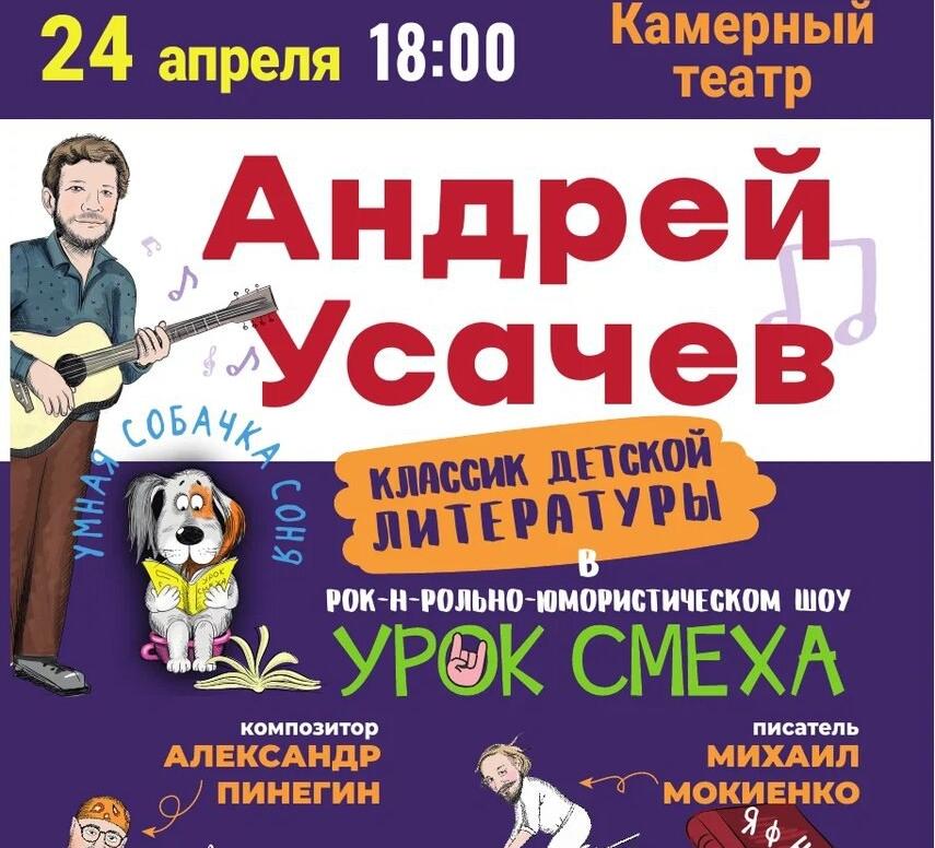 24 апреля в 18:00 в Камерном театре состоится встреча-концерт с классиком детской литературы Андреем Усачёвым, писателем Михаилом Мокиенко и композитором Александром Пинегиным (0+).