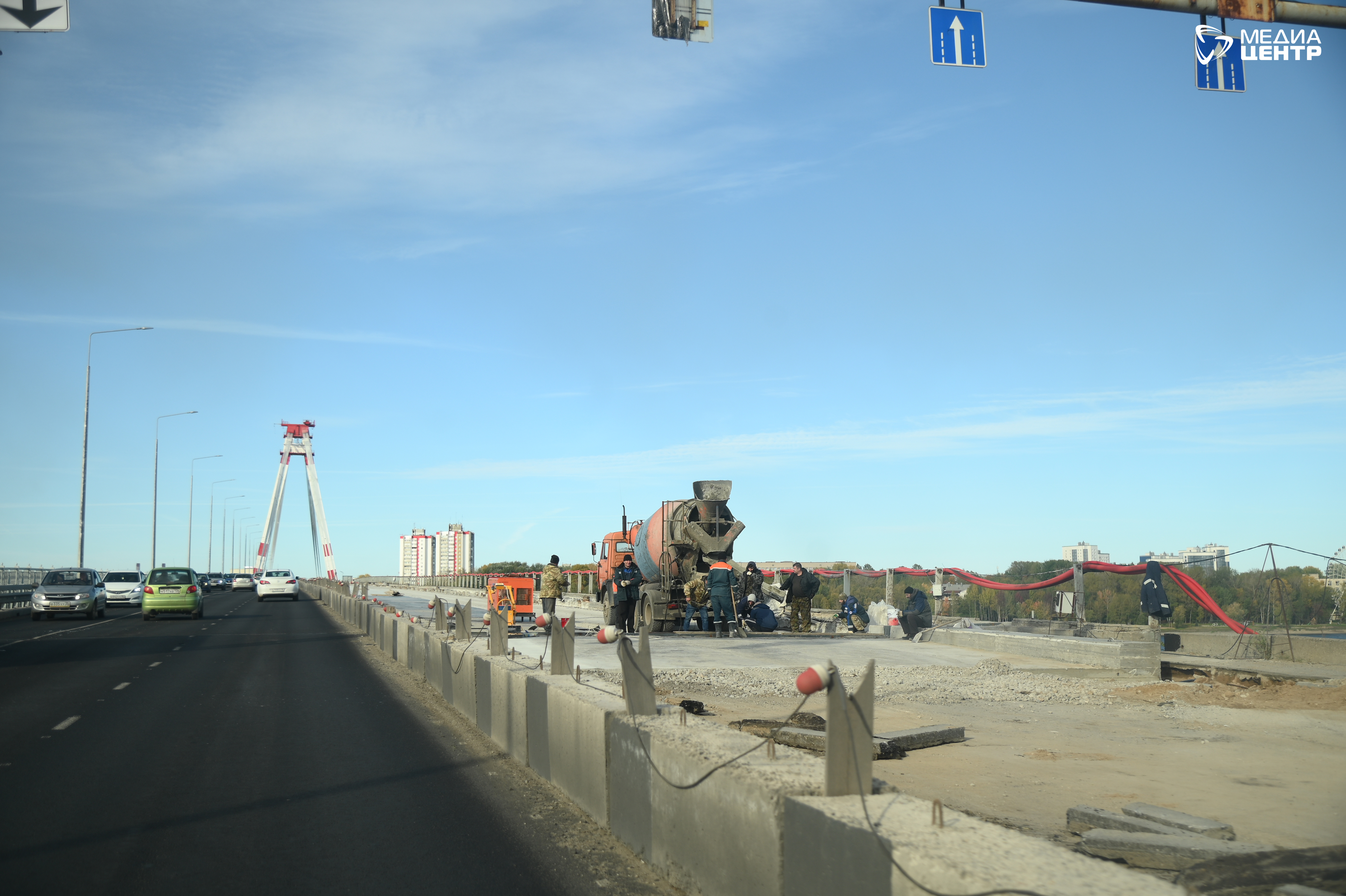 Пять полос для движения транспорта обещают открыть на Октябрьском мосту в ноябре. Одна полоса — та, что ближе к тротуару, — останется в распоряжении строителей. Еще один знаковый объект, новую поликлинику в ЗШК, надеются сдать в этом году.
