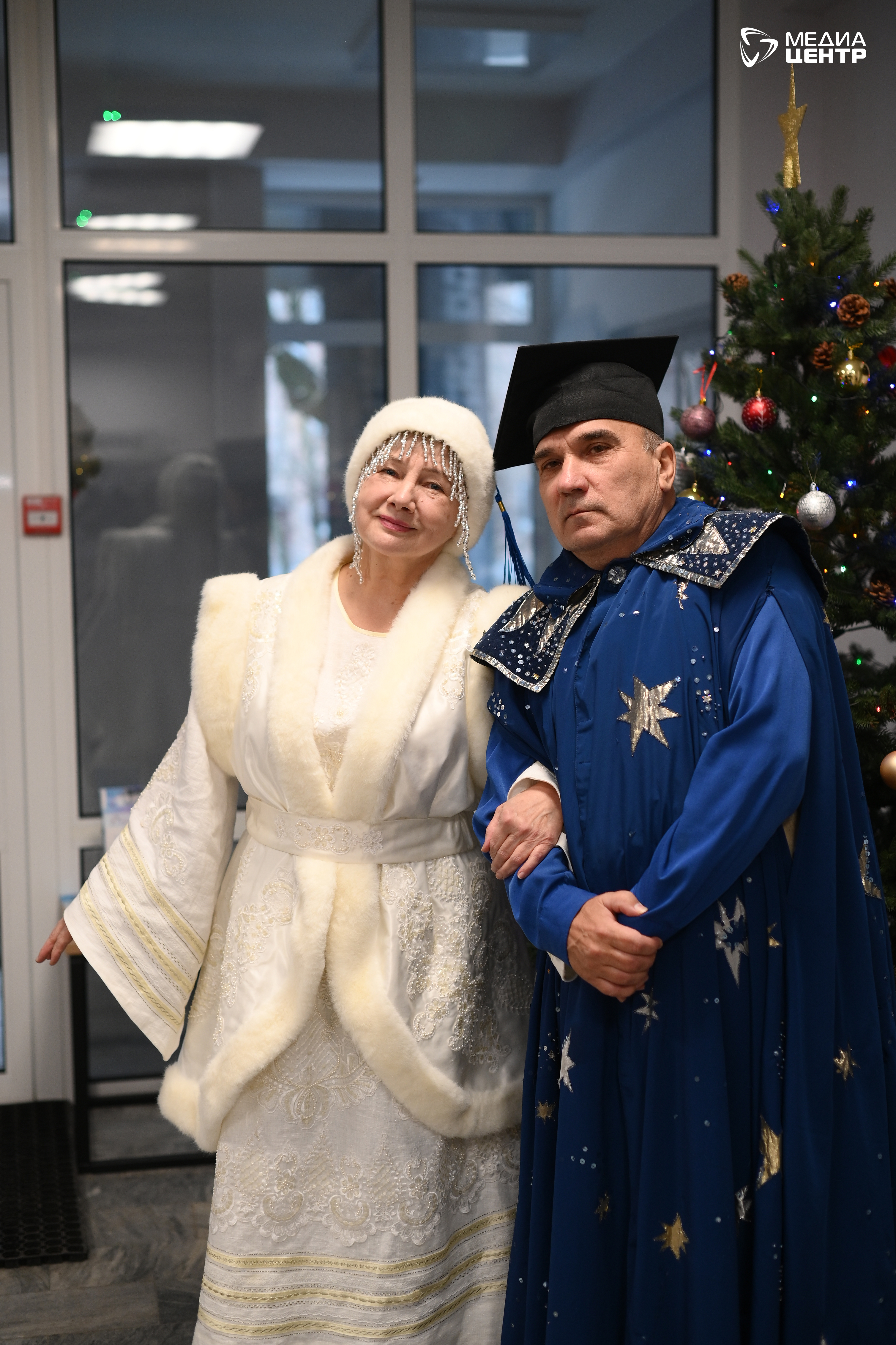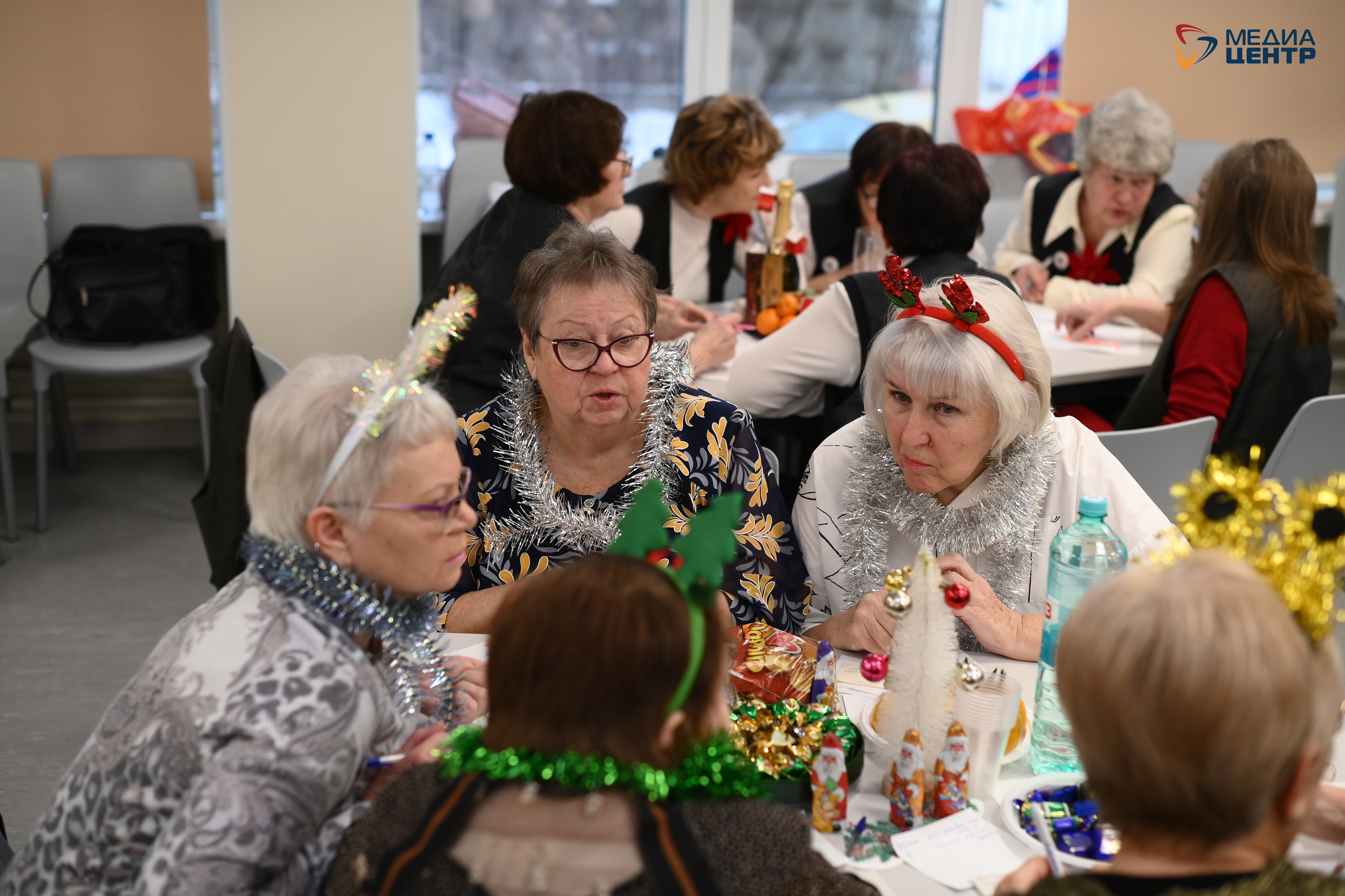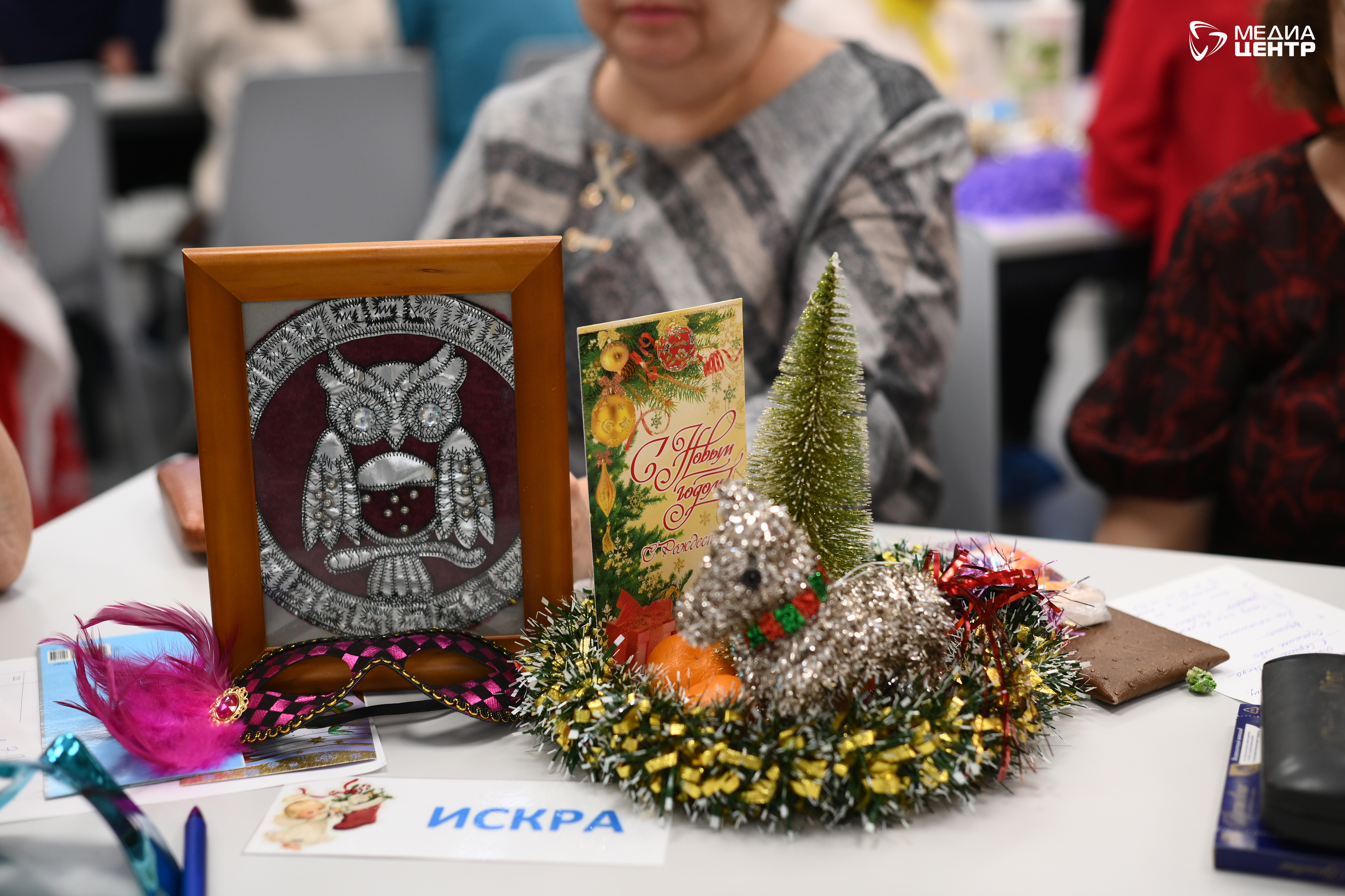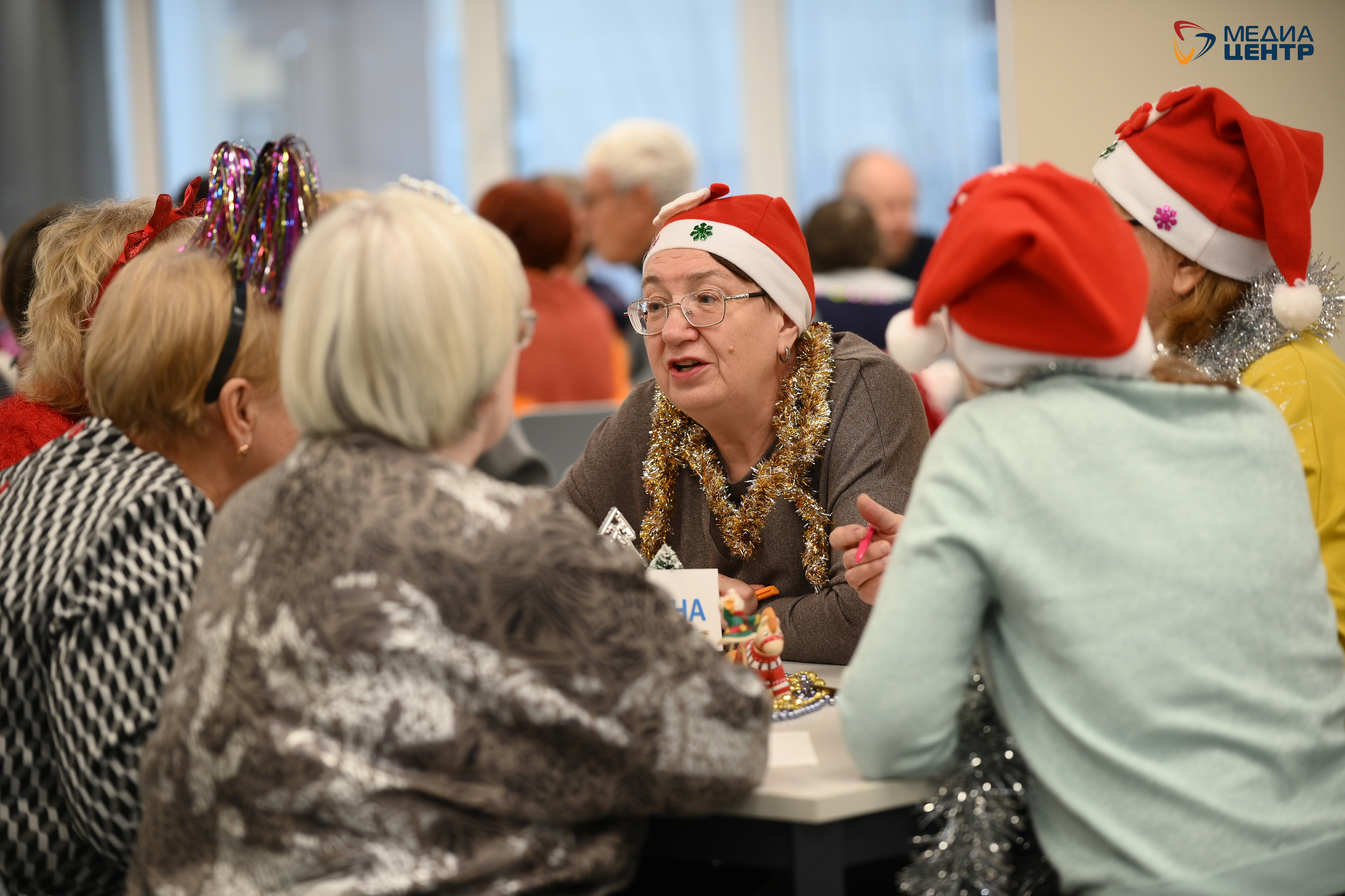 К 10 утра зал на первом этаже шумит как растревоженный улей. Все радостно приветствуют друг друга, делятся новостями, шутят, смеются. 14 команд клуба «Эрудит» готовятся к интеллектуальному сражению. Взгляд выхватывает команду Дома знаний — в одинаковых черно-белых одеждах с ярким акцентом, багряным цветком. За другими столами многие в новогодних костюмах — Снеговик, Звездочет, Елочка. Украшение стола каждой команды настраивает на праздничный лад: шампанское (закрытое), мандарины, елочки, пряничные домики, бусы, гирлянды, свечи (среди них поделки ручной работы).