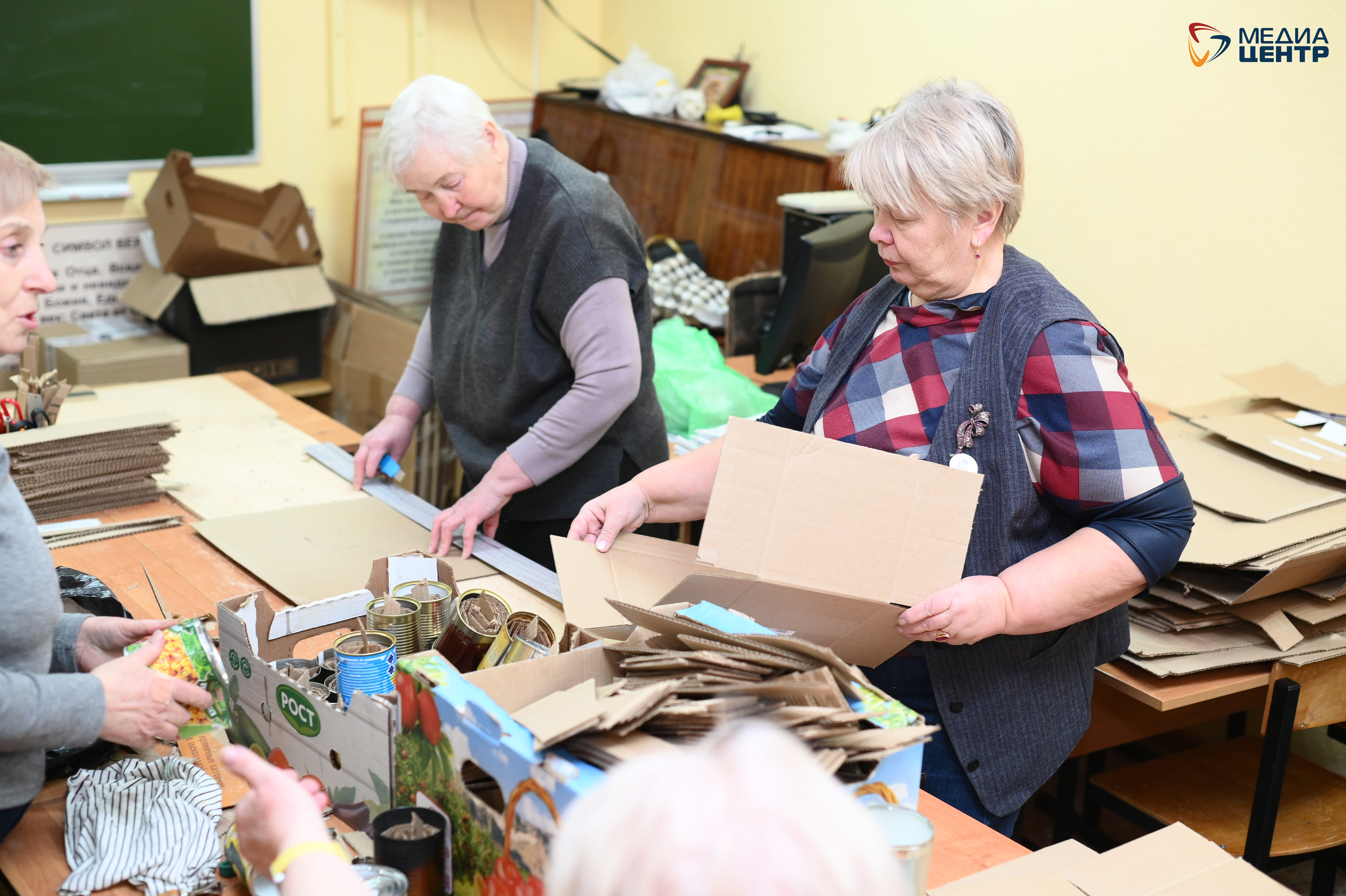 — Приходите в мастерскую Воскресной школы (Советский пр., 3. — Ред.), нас там целая команда. Мы каждую неделю отправляем посылки на СВО. А к 23 Февраля особенно хочется порадовать ребят, — пригласила нас тогда Ольга Николаевна. — По отзывам бойцов, ребята очень ждут сладкого. Печенье, шоколад, конфеты, сгущенка нарасхват. В спросе белье: трусы-боксеры, футболки, носки; мужской парфюм. Ребята очень скучают по таким привычным вещам, как пенка для бритья, гель, бритвенный станок и прочее. Мы приняли приглашение и пришли в Воскресную школу. Курирует занятия и оказывает всяческое содействие в организации посылок Марина Курсакова, руководитель духовно-просветительского центра «Соборная горка» при Архиерейском подворье Воскресенского собора.
