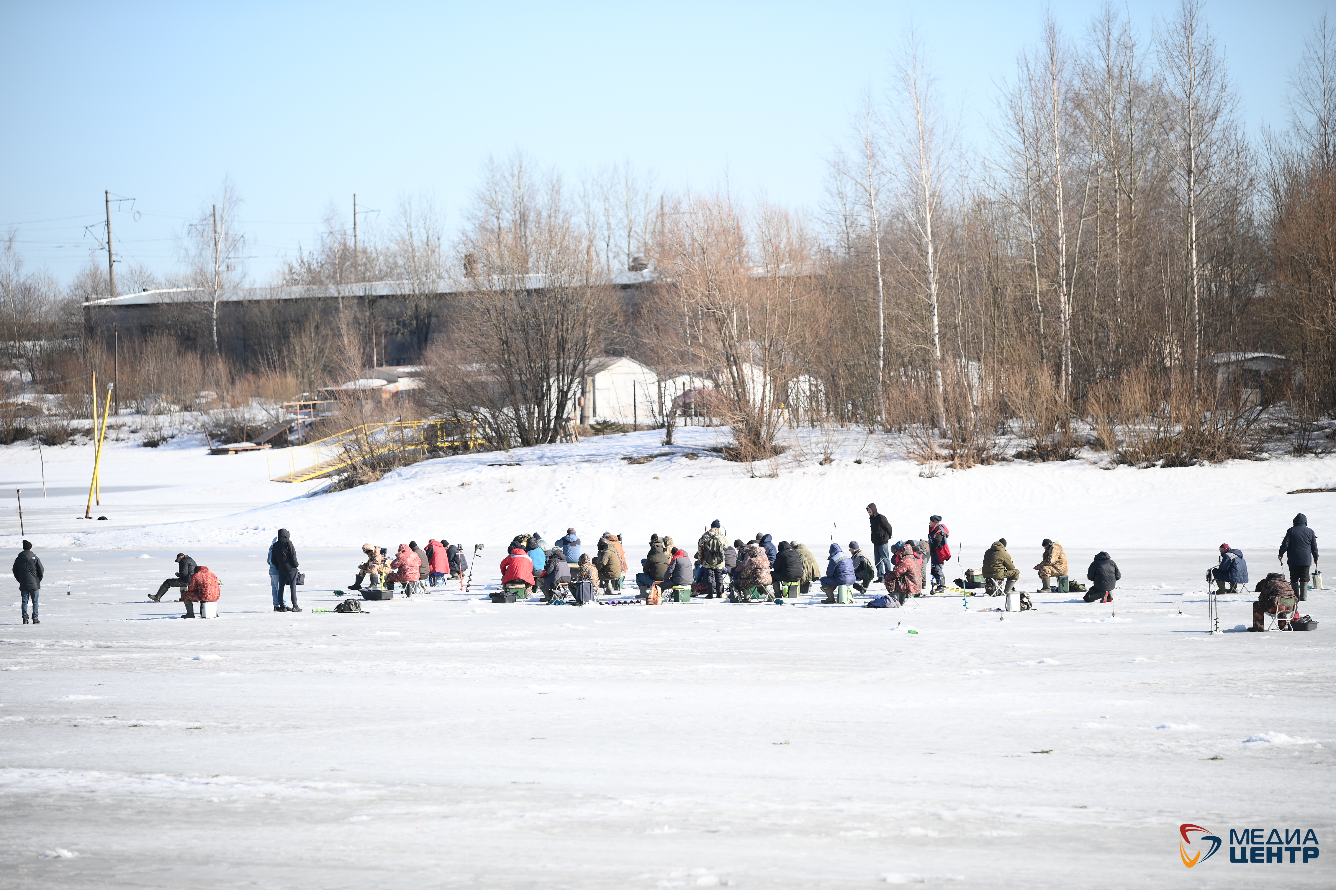 Ледяной покров на Ягорбе пока держится: здесь его толщина от 30 до 50 сантиметров. Череповецкие любители зимней рыбалки перебрались к набережной Заягорбского моста.