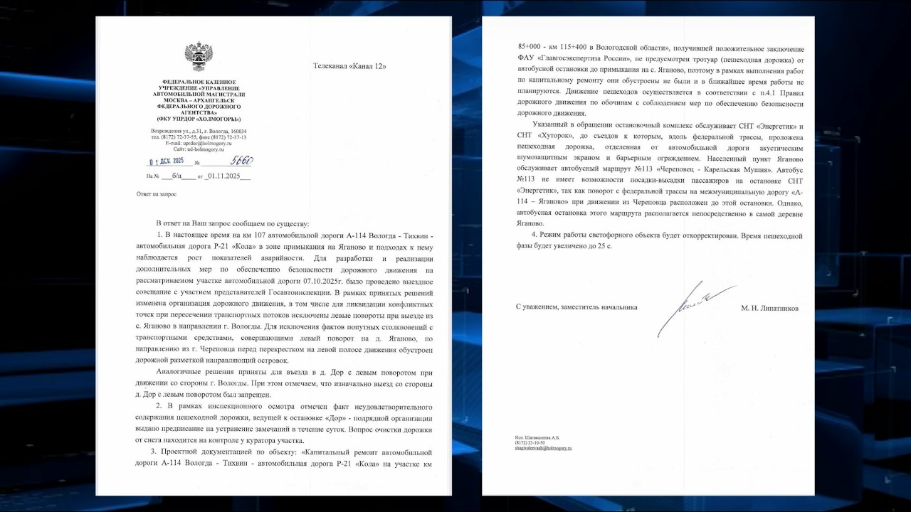 Это сообщили в управлении дорог «Холмогоры» в ответ на официальный запрос «Канала 12». Напомним, ранее жители жаловались на организацию дорожного движения на этом участке. Были установлены разделительные ограждения, а левые повороты запрещены.