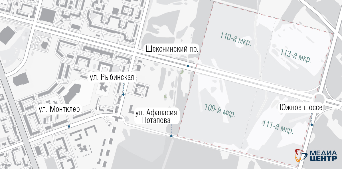 В Череповце начинают планировать застройку 109, 110, 111 и 113-го микрорайонов. Они будут располагаться между улицей Рыбинской и Южным шоссе по обеим сторонам Шекснинского проспекта. Там появятся жилые дома, детские сады, школы и объекты культуры.