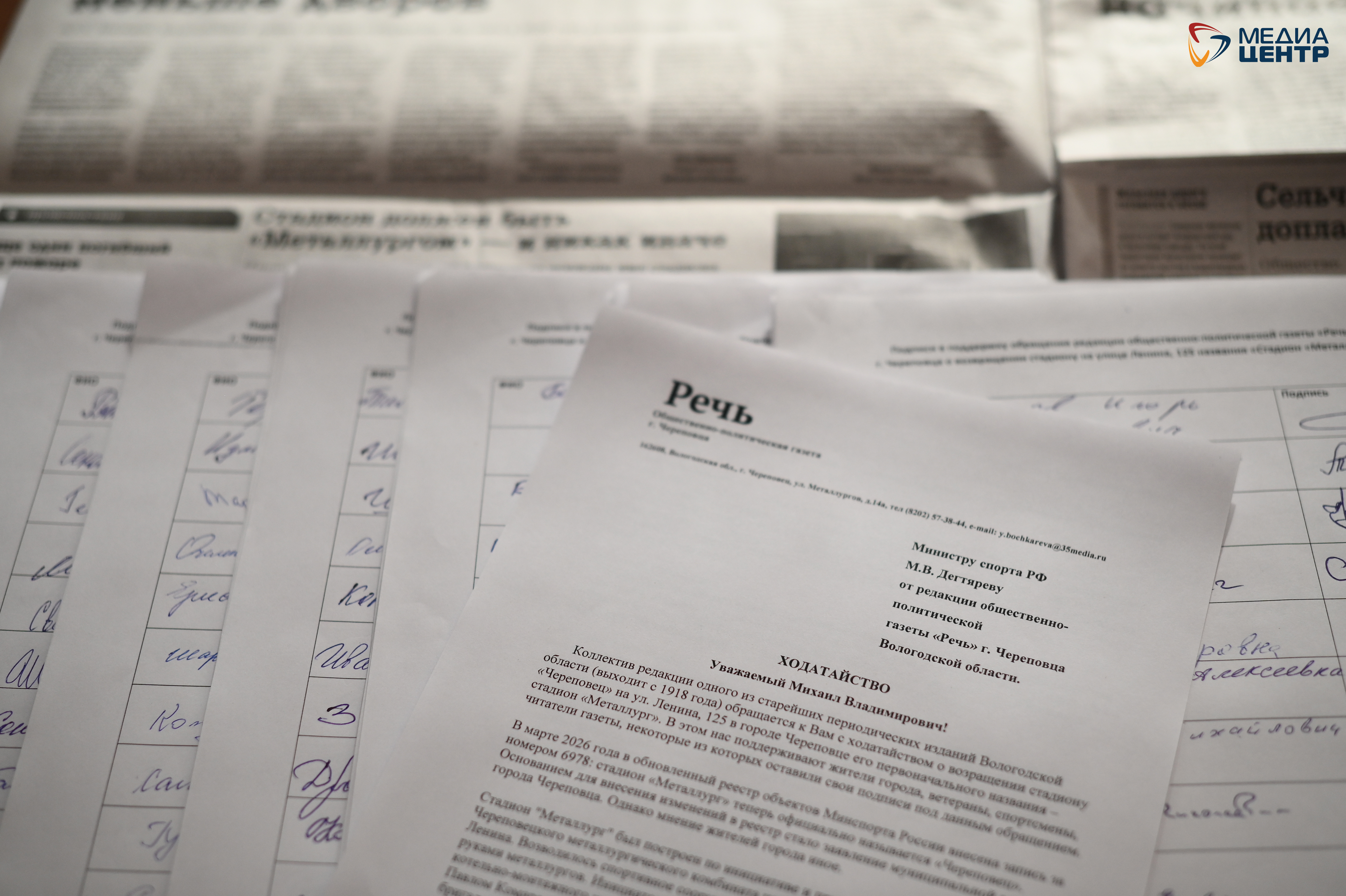 От редакции и от читателей «Речи» мы подготовили письмо в Министерство спорта РФ о возвращении стадиону «Металлург» его прежнего названия. Газета объявила сбор подписей с 23 по 27 марта на ул. Металлургов, 14а, и более 400 читателей-горожан поддержали нас за этот короткий срок.