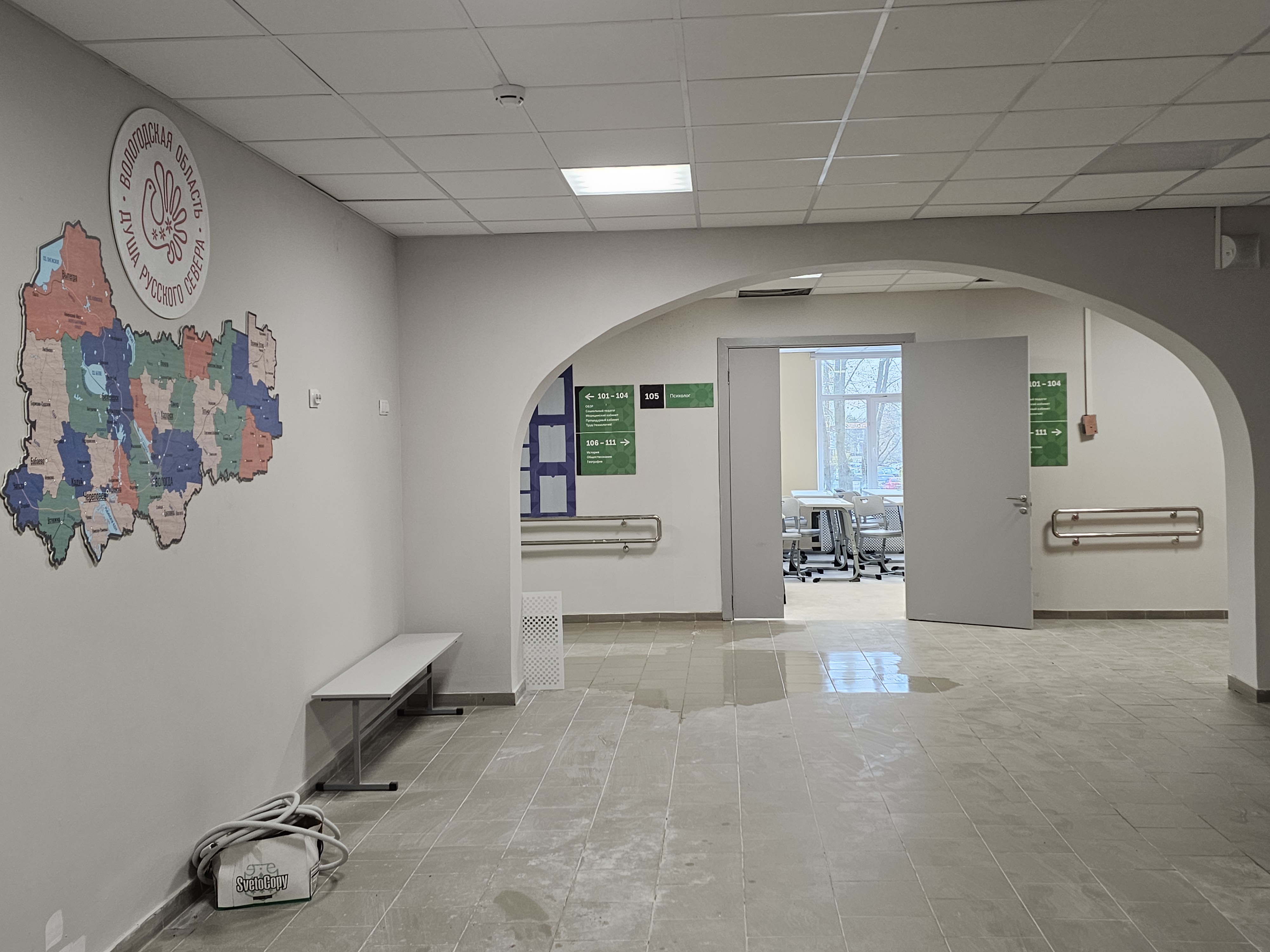 Между тем, в спортзале до сих пор нет света. Оборудование в столовой не подключено, совсем. Как и оборудование в классах - его надо установить в ближайшие два-три дня. Лестница вызывает ужас. Ну и пыль, которая, как показывает опыт, будет преследовать помещения минимум месяц. Словом, вновь аврал.
