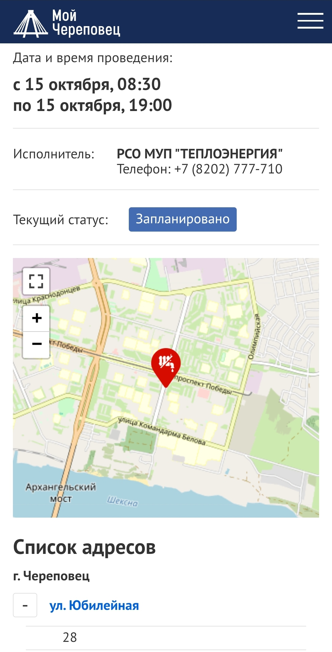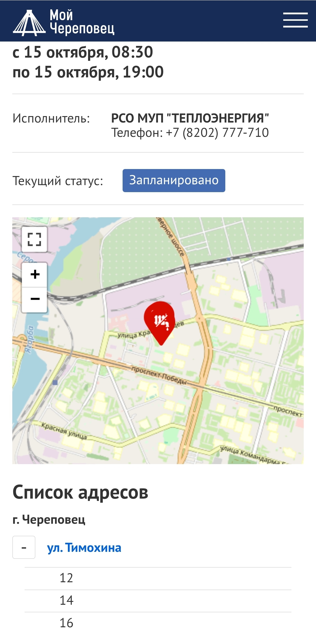 15 октября с 9:00 до 17:00 отключат теплоснабжение по адресам: