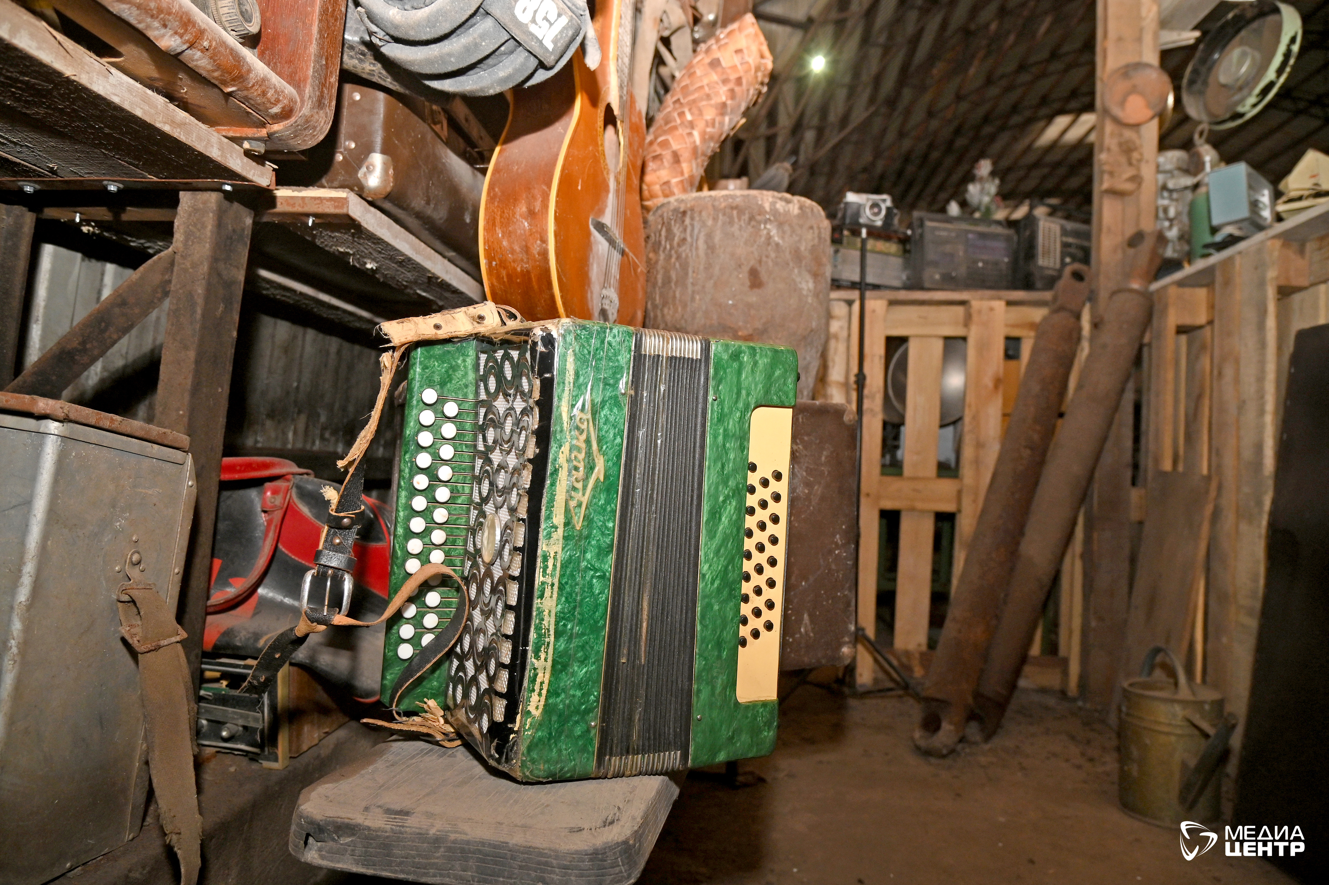 Владимир Применко собирает и хранит старинные фотографии, книги, инструменты и предметы быта. Иконы, которые иногда попадаются в мусоре, передает в храм. Угол цеха, в котором расположилась экспозиция, кажется живым порталом в прошлое.