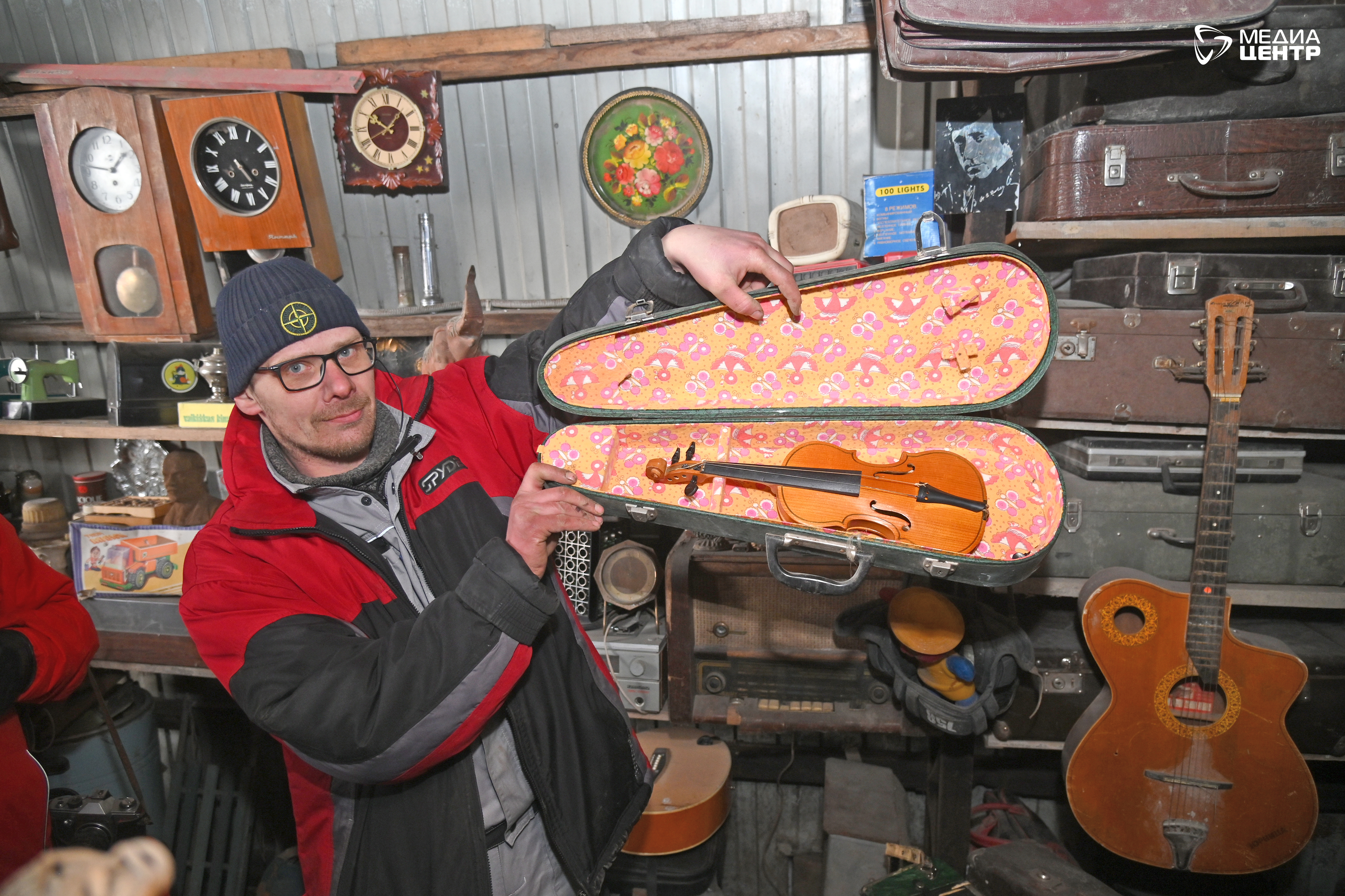 Какие еще редкости попадались в мусоре? Большой амбарный ключ весом килограмма в полтора. Пестерь — плетеный кузов, с которым в старину ходили в лес за ягодами. Небольшая детская скрипка в чехле — не великих мастеров, но полностью сохранившаяся; ее бы отреставрировать и настроить… Но пока она ждет своих страдивари и паганини. Вот совсем маленький самовар. На фоне обычных он выглядит игрушечным.