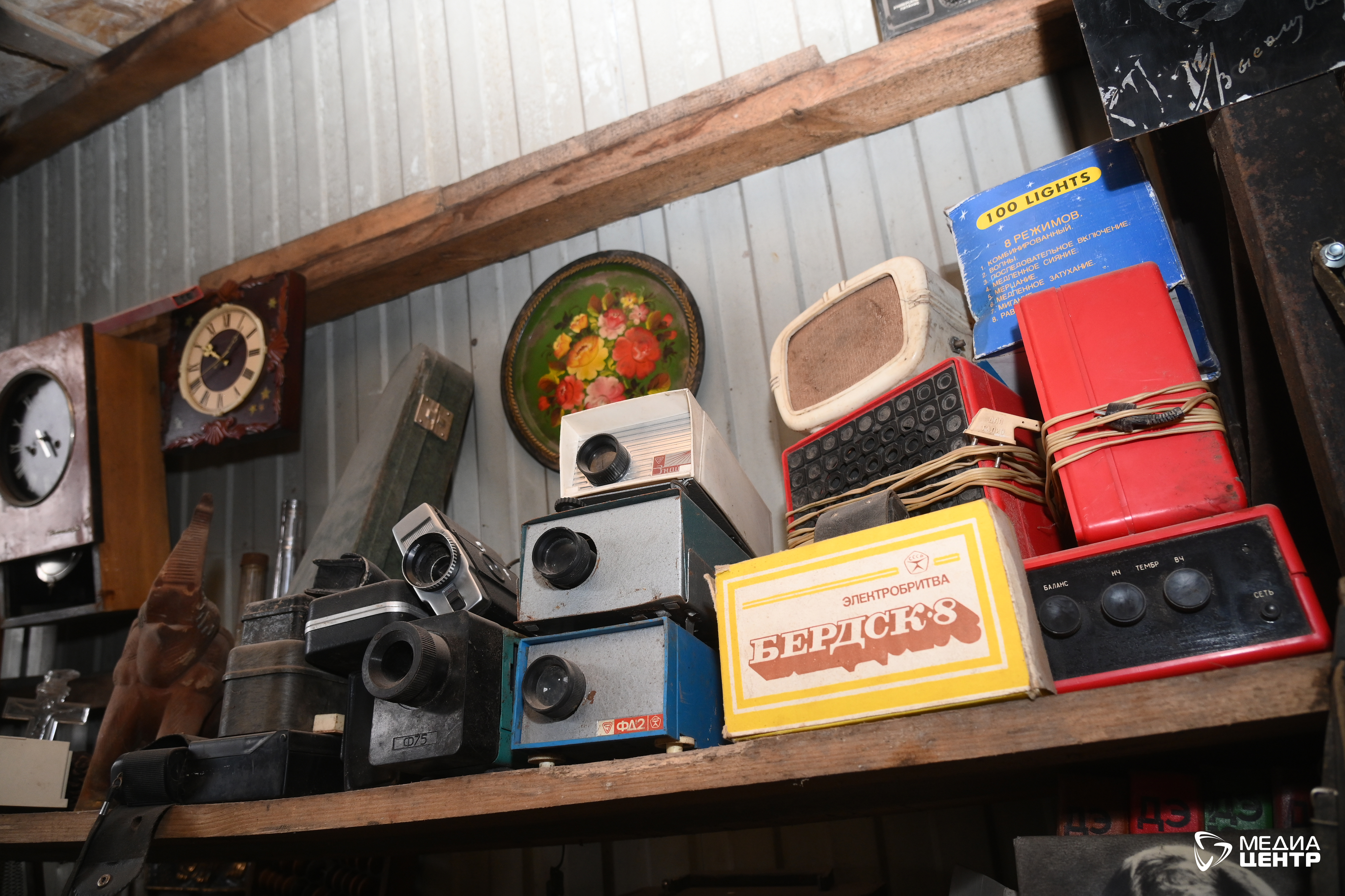 Продолжаем оглядывать полки с багажом прошлого. Здесь много часов: настенные, наручные, с кукушкой, старые и почти новые.