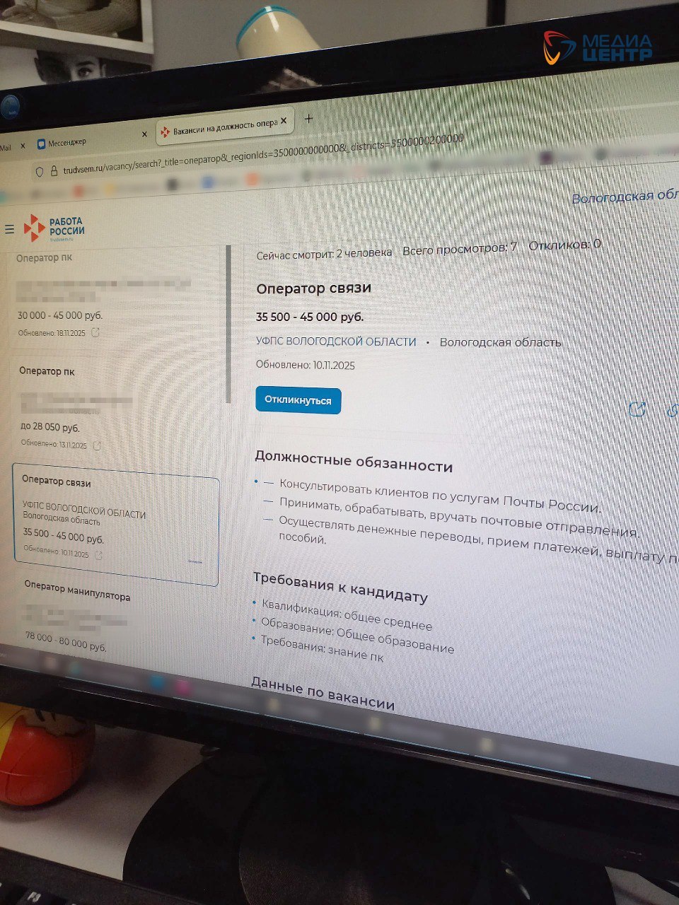 Желая выяснить ситуацию напрямую у «Почты России», наткнулись на автоответчик. Нам удалось дозвониться только до горячей линии почты. Женский голос проинформировал о режиме работы отделения 162612: понедельник, среда, суббота, воскресенье — выходные; вторник, четверг, пятница — с 10.00 до 18.00, перерыв с 13.00 до 14.00. При этом на некоторых ресурсах до сих пор указан старый, более лояльный график — с понедельника по пятницу и даже в субботу. А на информационном стенде и вовсе висит объявление с двумя рабочими днями. Это несоответствие вводит горожан в заблуждение и вызывает еще больше вопросов. На момент подготовки материала официальных комментариев от пресс-службы «Почты России» или ее череповецкого филиала получить не удалось. Горячая линия компании 8 (800) 100-00-00 ограничивается автоматическим информированием. При переключении на оператора связи нам сообщили, что у работников почты персональный график. На вопрос о нехватке кадров ответили, что нужно обратиться к рекрутеру, и предложили… работу в этом отделении. Действительно, по информации сайта Роструда «Работа России», в почтовое отделение на Первомайской, 15, на данный момент требуются операторы связи.
