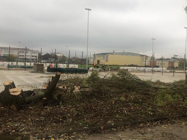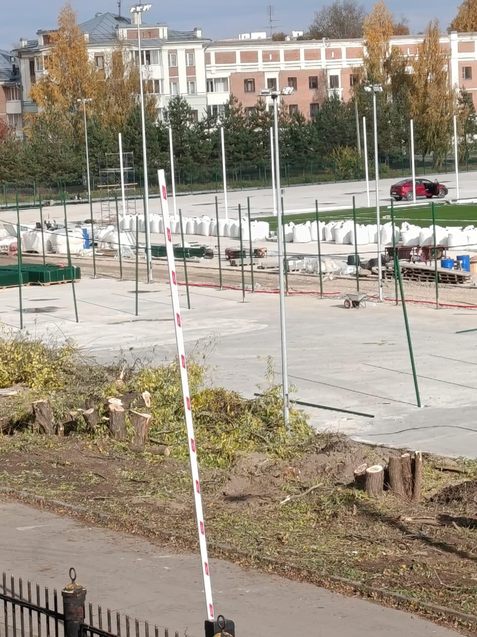 Стадион «Политехник» реконструируют, но помешали реконструкции десятки вполне здоровых деревьев.