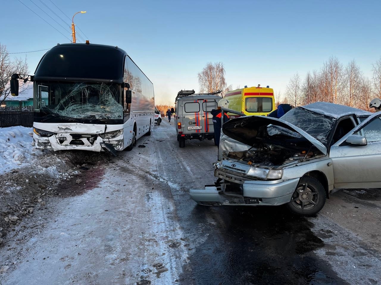 Так, на автодороге Великий Устюг — Лодейка 7 декабря днем 26-летняя девушка, управляя автомобилем ВАЗ-2112, выехала на «встречку» и столкнулась с автобусом «Зонг-Тонг». На месте ДТП скончалась 62-летняя пассажирка ВАЗа, сидевшая впереди. Водитель легковушки доставлена в реанимацию.
