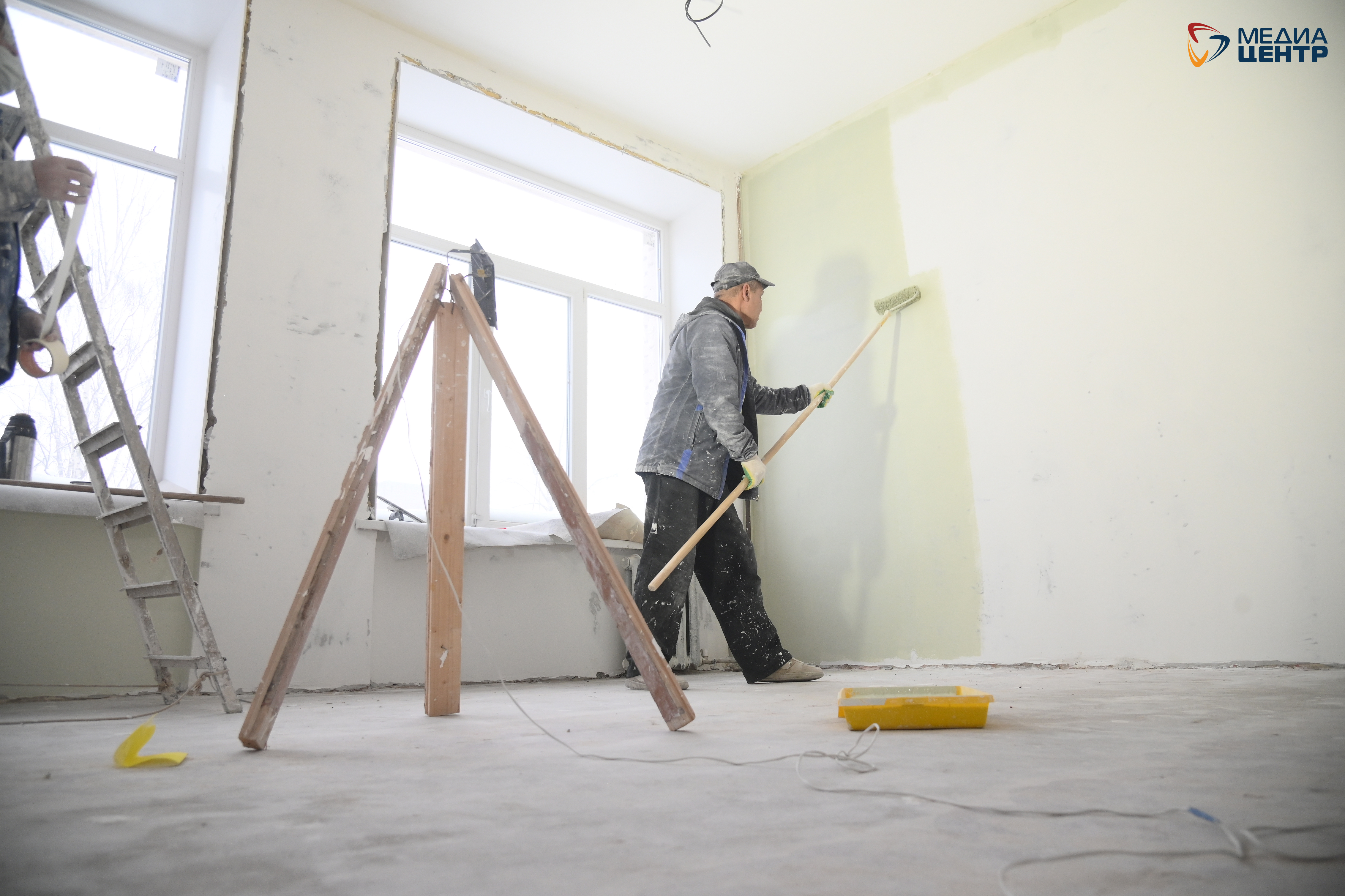 Несмотря на сжатые по новым условиям федеральной программы сроки, подрядчик заявляет: «Сдадим в срок». И уверенно показывает результаты проделанной работы, проводя нас по кабинетам. Часть из них уже готовы к чистовой отделке, а в некоторых вовсю орудуют маляры, нанося первый слой краски. По словам исполнителя, ежедневно на объекте заняты от 40 до 50 человек.