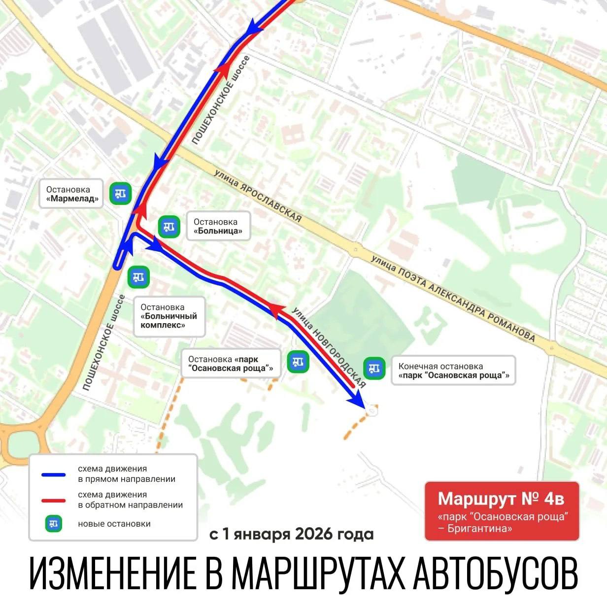 До парка «Осановская роща» можно будет доехать на новом маршруте 4В. С начала года шесть автобусов временно заменят троллейбусы №4.