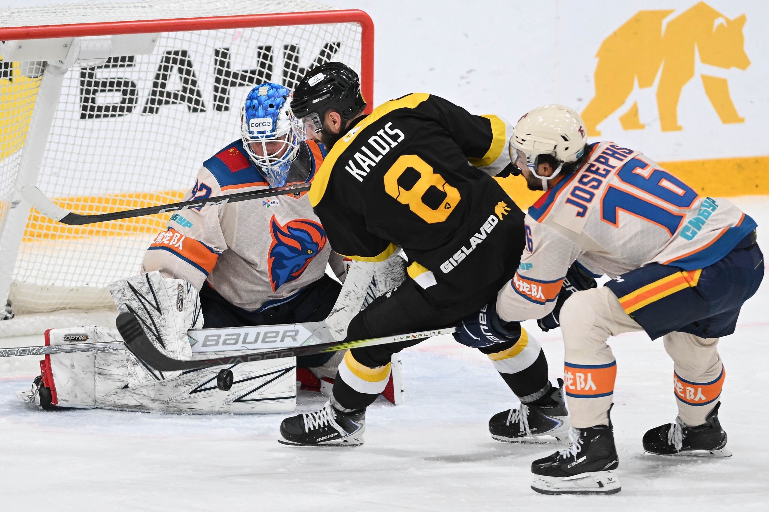 Игра оживилась перед перерывом, когда судьи удалили по одному игроку каждой из команд. Из трех бросков в створ ворот, которые нанесли гости во втором периоде, один стал голевым — бело-голубые удвоили счет. А после перерыва забросили третью шайбу.