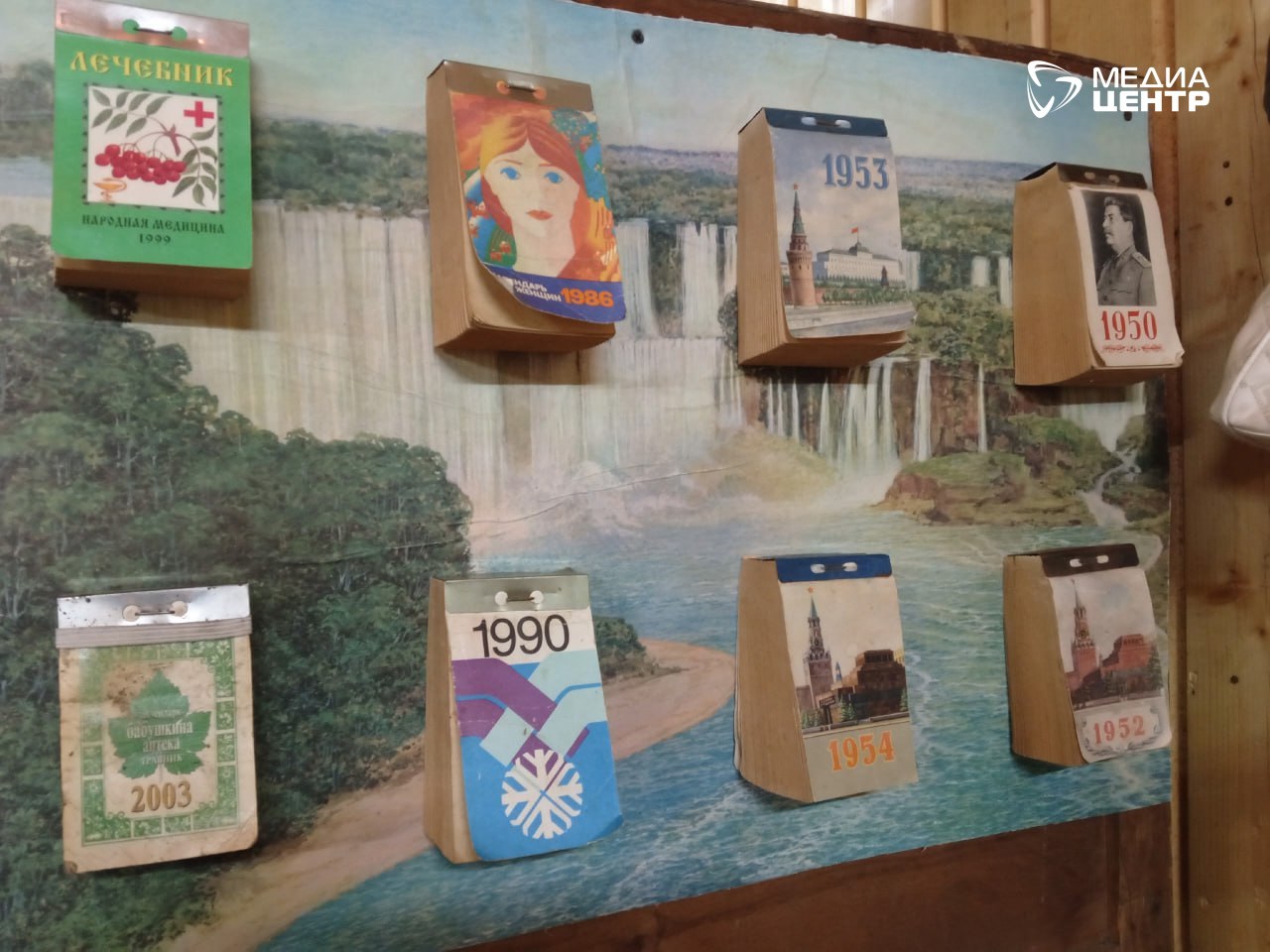 По скрипучим ступеням я поднимаюсь в это пространство. На полу целый круг разнообразной обуви, затем уголок крестьянского быта. Кровать с периной и кружевной накидкой, трюмо, на стене радио, шкаф, в котором вывешены народные женские платья, рядом на вешалке мужские костюмы, на полках — детское. Иду дальше: тут — все, что надо для кухни, там — множество фотографий, а здесь — советские отрывные календари: с портретами Сталина, Ленина, знаменами, горнами… Но это только чердак.