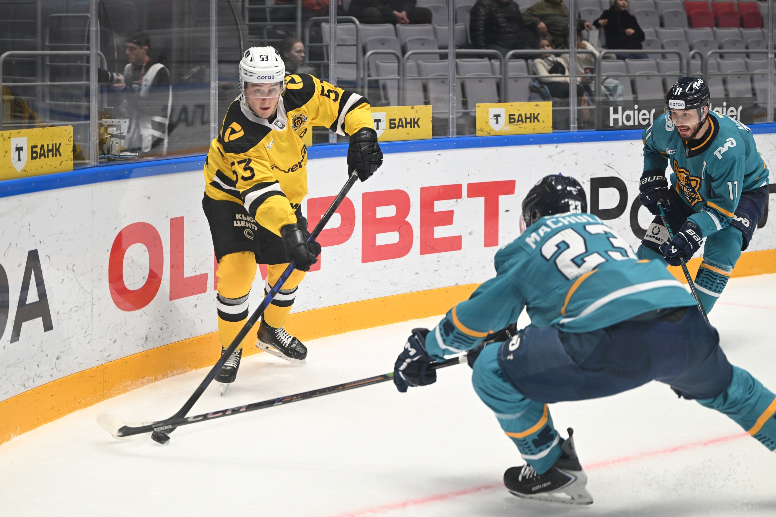 Игроки «Северстали» тоже у журналистов нарасхват. Вопросы те же — как вы так взлетели и почему не проигрываете?
