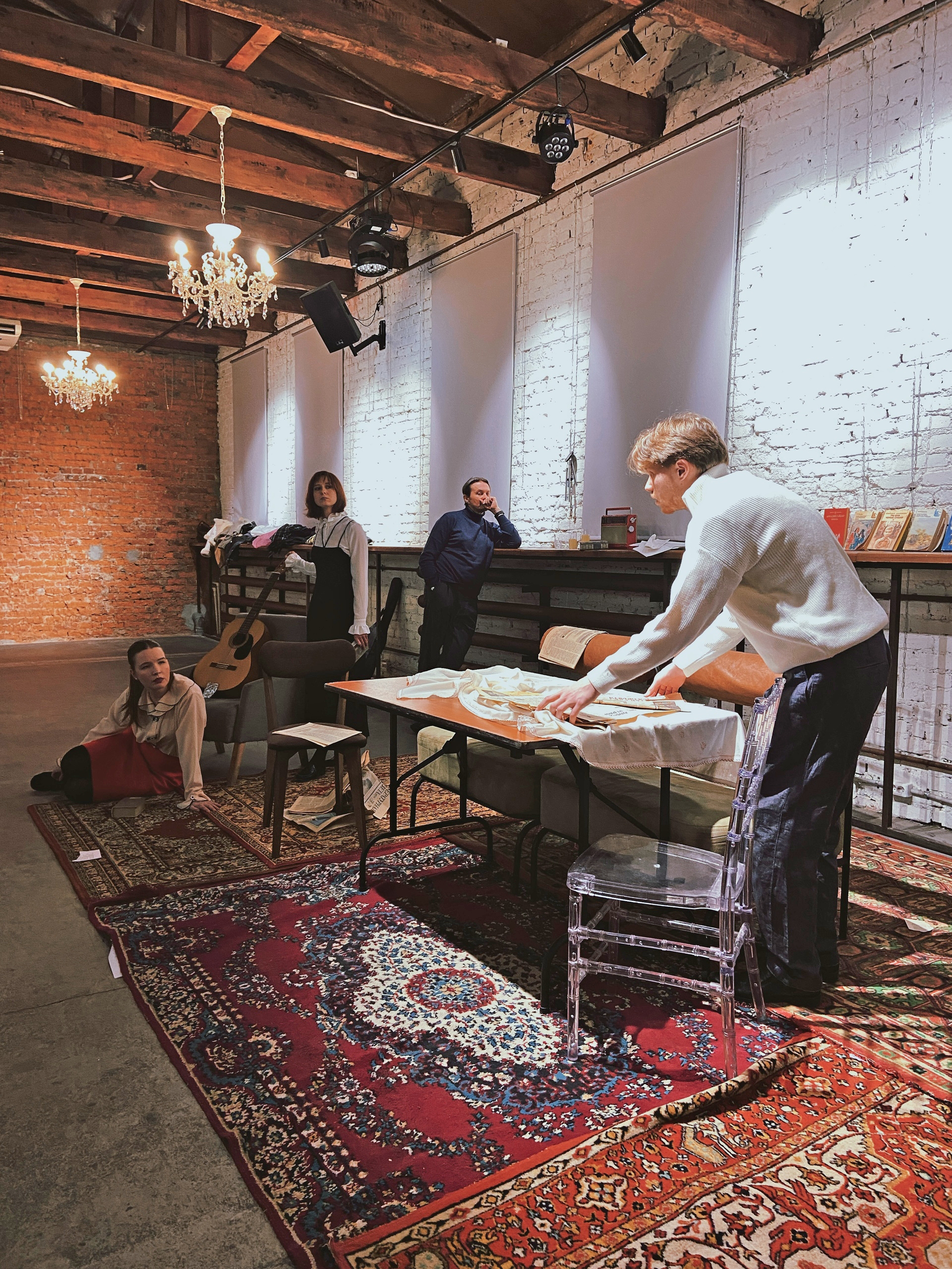 — Башлачев существует как голос, как фотография. Спектакль — это попадание людей из XXI века в квартирник 80-х годов. Самого Башлачева у нас нет. Есть его записи. А главные герои — наши современники, у каждого из которых своя причина прийти на этот квартирник. Поэт, журналист, следователь, друг поэта, его возлюбленная…