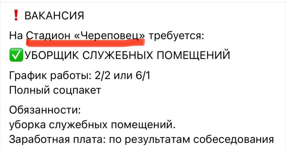 Стадион «Металлург» в афишах сменил название на «Череповец»