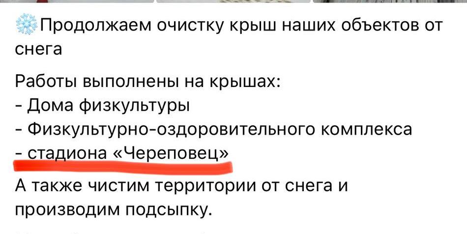 В Череповце, судя по всему, тихо переименовали один из главных спортивных объектов города. В последних сообщениях и афишах муниципального спортивного клуба «Череповец» вместо привычного названия «Металлург» фигурирует стадион «Череповец».