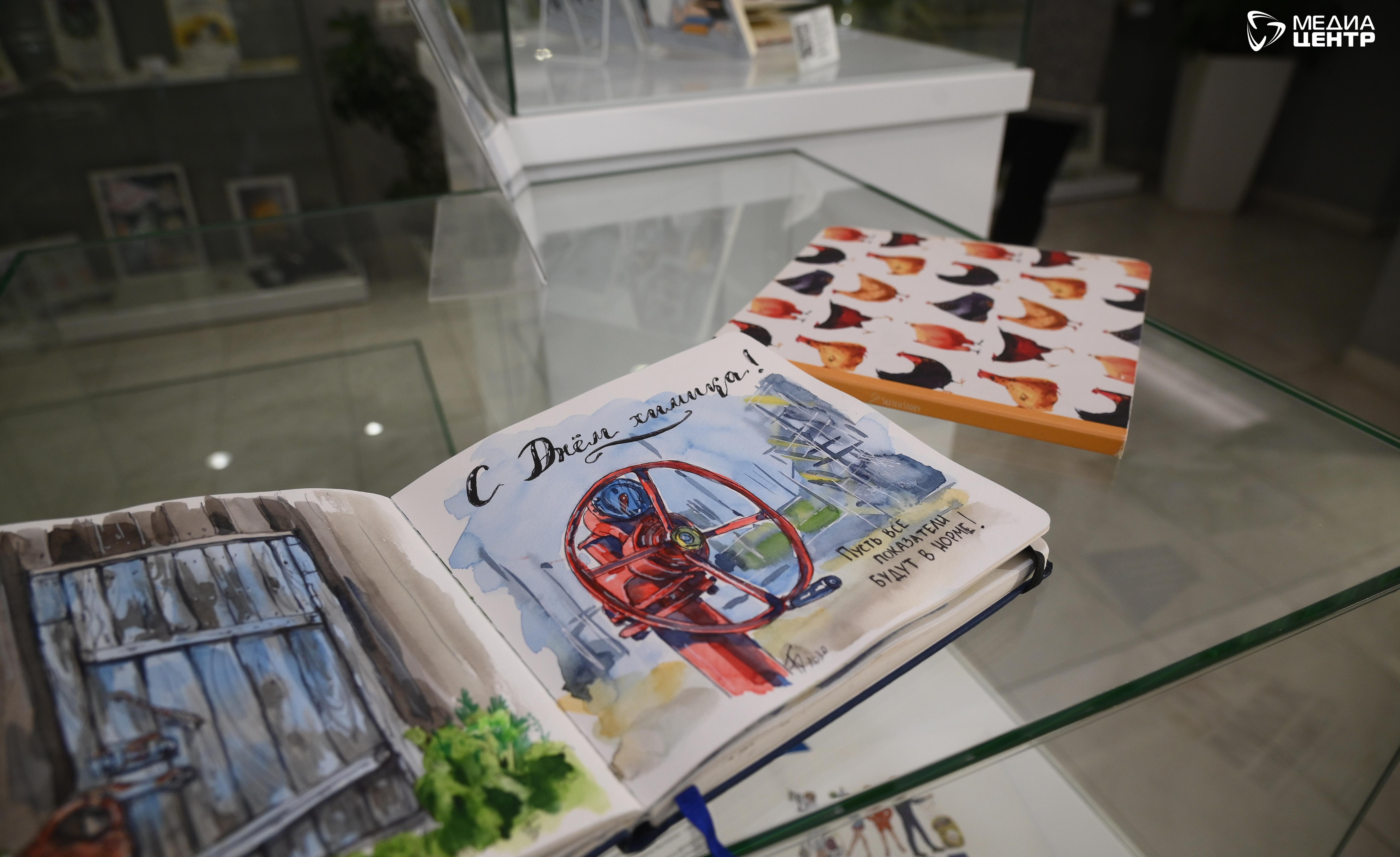 — Когда пришла работать в «Зеленую планету» в 2017 году, я погрузилась в атмосферу химического производства и мне было необходимо об этом рассказать. Наверное, это мой талант — замечать цветовые контрасты, красоту производственной инфраструктуры, зданий. Стараюсь это отобразить. Одна из моих знаковых иллюстраций, нарисованных маркерами, — красный вентиль и датчик измерения давления на фоне зеленых и серых зданий «ФосАгро». Она очень символично отображает наше производство и вошла в первый корпоративный календарь на 2021 год, — рассказывает наша героиня. — В разных городах присутствия компании есть некоторые нюансы, свои социальные, производственные объекты, они немного отличаются. Но в целом, наверное, это переплетение труб, наши музеи. Например, я рисовала обложку для годового отчета нашего интерактивного центра, на которой отображены все музеи в регионах присутствия компании. Отличается, конечно, Кировск. Там больше романтики: горы, огромные желтые карьерные машины — здесь можно дать волю фантазии.