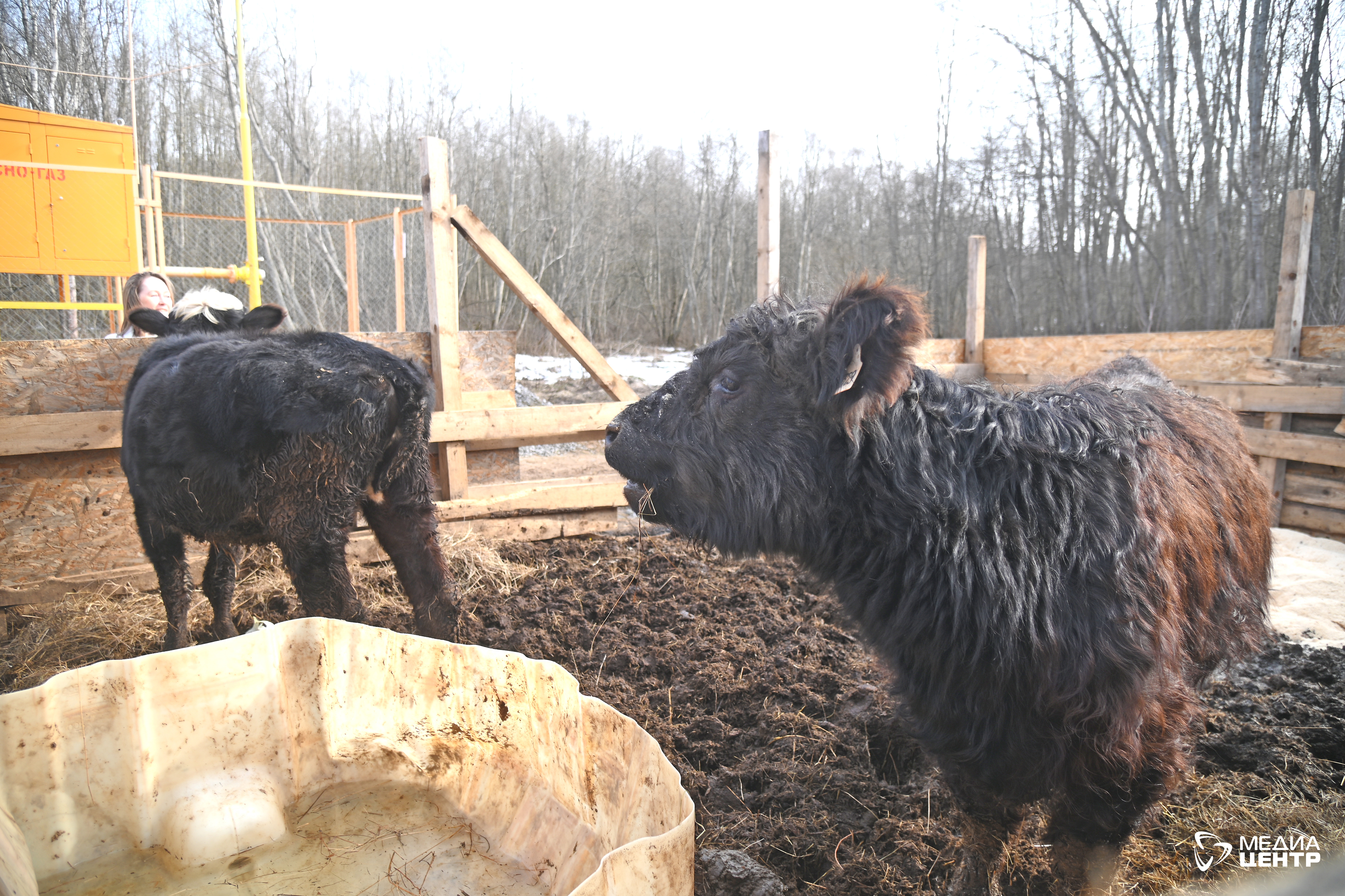 Во время этой трапезы к загону подъехала машина с прицепом. Из нее вышли двое мужчин, представиться они не захотели, но сказали, что животные принадлежат им и они намерены их увезти. Куда — пояснять отказались. Из короткого разговора «Речи» стало известно, что их питомцы — полуторагодовалые телочки, обитают здесь уже несколько месяцев, зимовали под открытым небом. Со слов владельца, изначально их было шесть. Двоих он увез ранее, еще двоих, которых потом нашли мертвыми, загрызли местные собаки. Также мужчина заверил, что животные все время были под его присмотром: