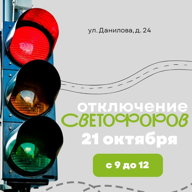 21 октября с 9:00 до 12:00 будет отключен светофор в районе дома №24 на улице Данилова. Это плановое отключение. Рекомендуем учесть эту информацию при планировании своего маршрута.