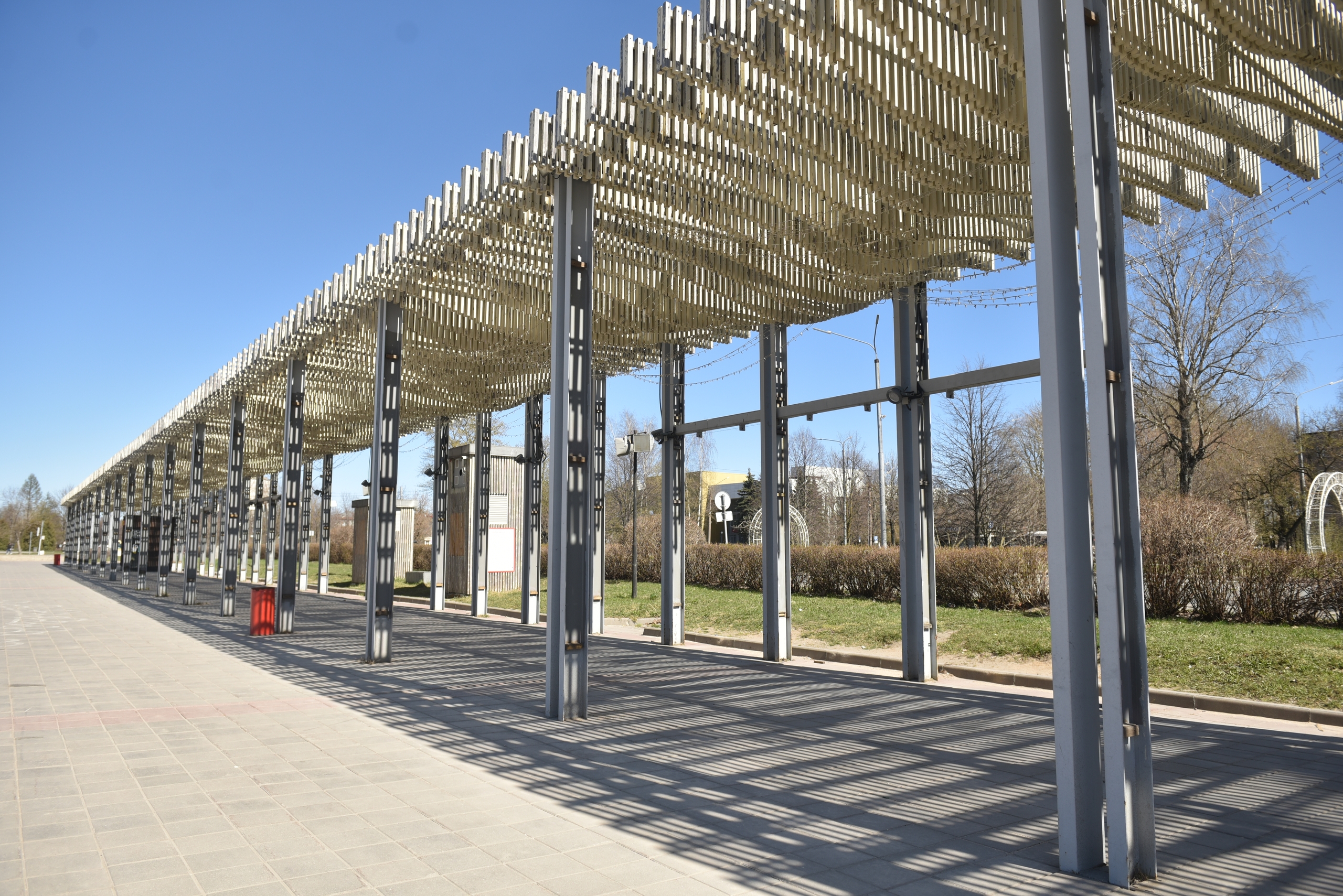 Накануне специалисты приступили к промывке водной системы фонтана. К тому же перголу на площади Молодежи начали ремонтировать: обшивка с опор снята, качели и скамейки увезены.