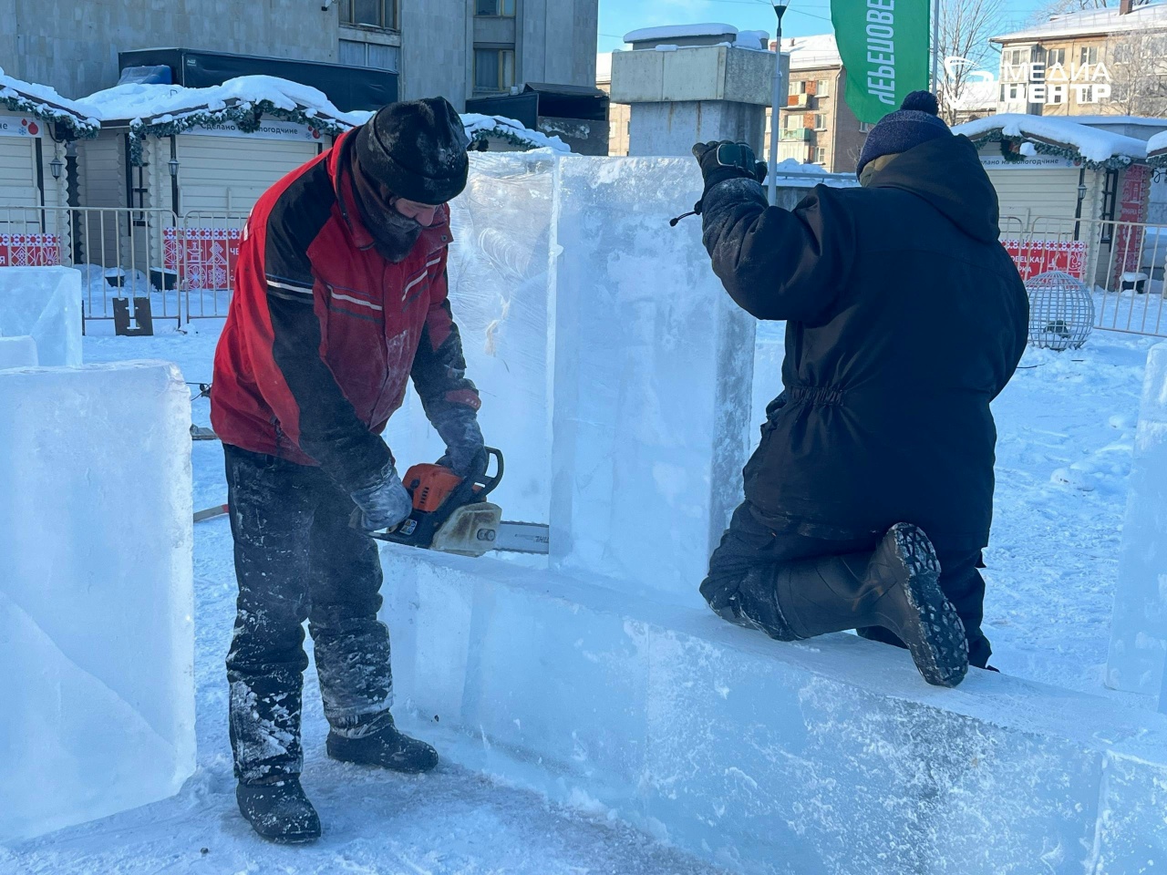 В этом году участвуют 13 команд из разных городов страны и Беларуси. География участников впечатляет. У них есть всего три дня, чтобы превратить лёд в произведение искусства.