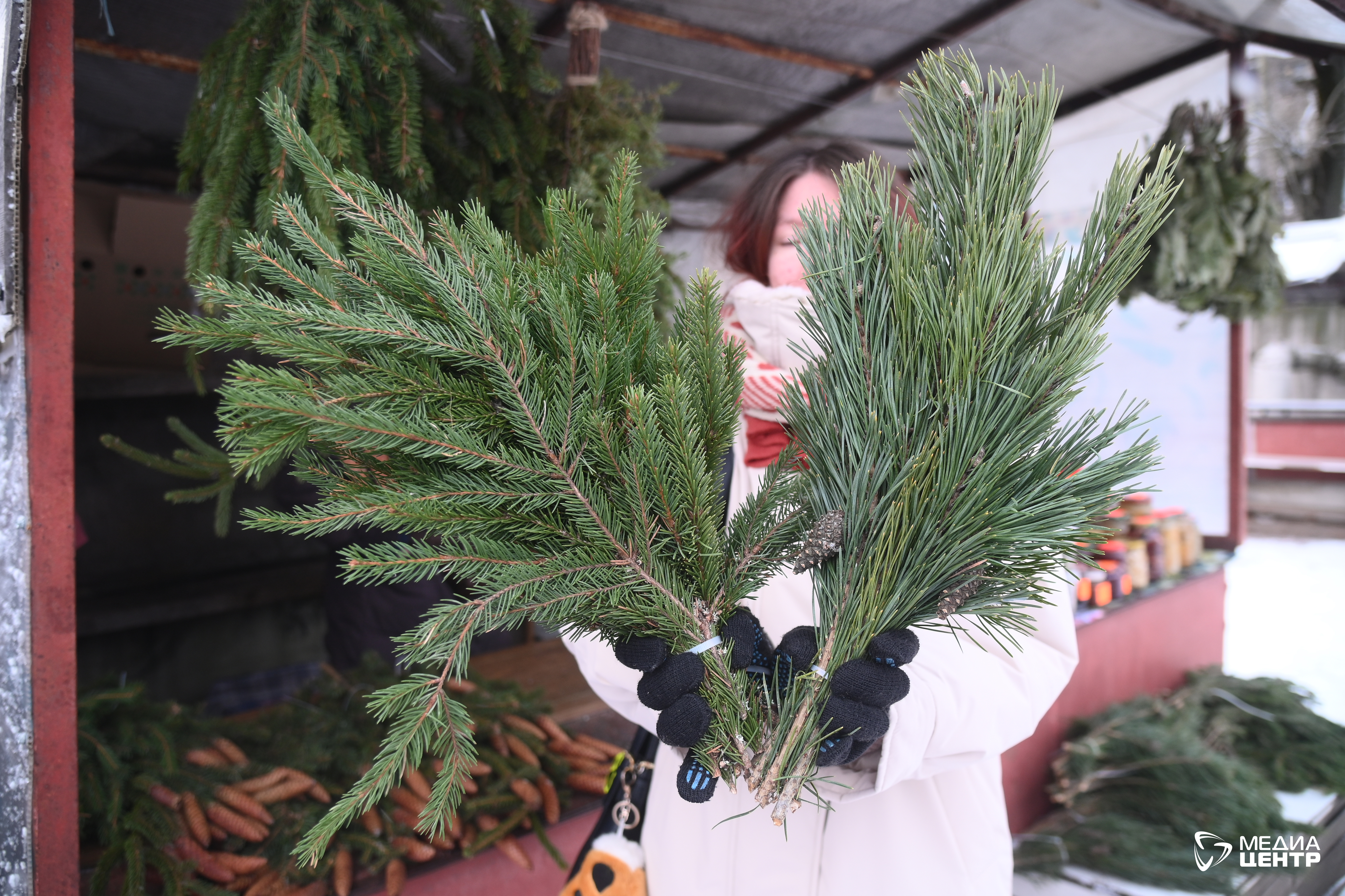 Однако хвойным ароматом торгуют не только на елочных базарах. В цветочных магазинах предлагают нобилис — удовольствие будет стоить 1500 рублей. Веточку можно найти и в ТЦ «Макси», причем даже дешевле: по карте торговой сети — 299 рублей, без нее — 599. А на колхозном рынке, помимо двух точек продаж елок, есть еще и павильон, где торгуют еловыми букетами. Один такой обойдется в 250 рублей.
