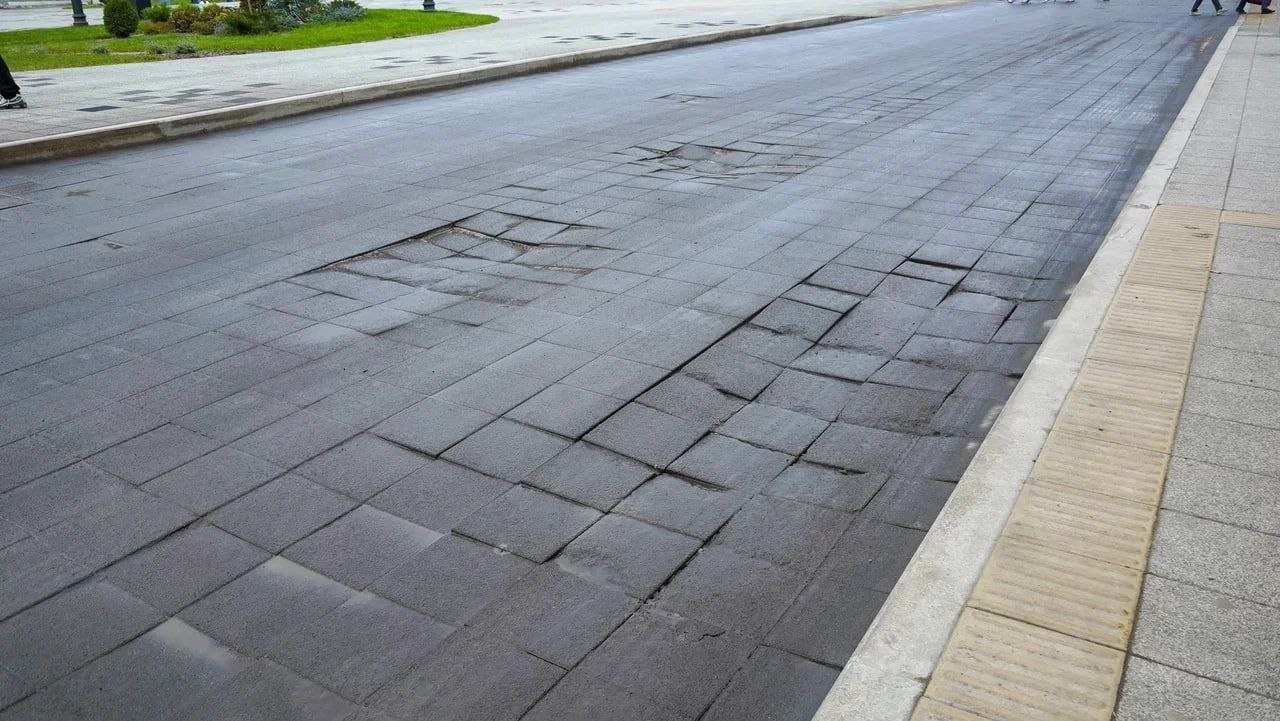 Дефекты плиточного покрытия стали появляться сразу, как только было запущено движение транспорта.