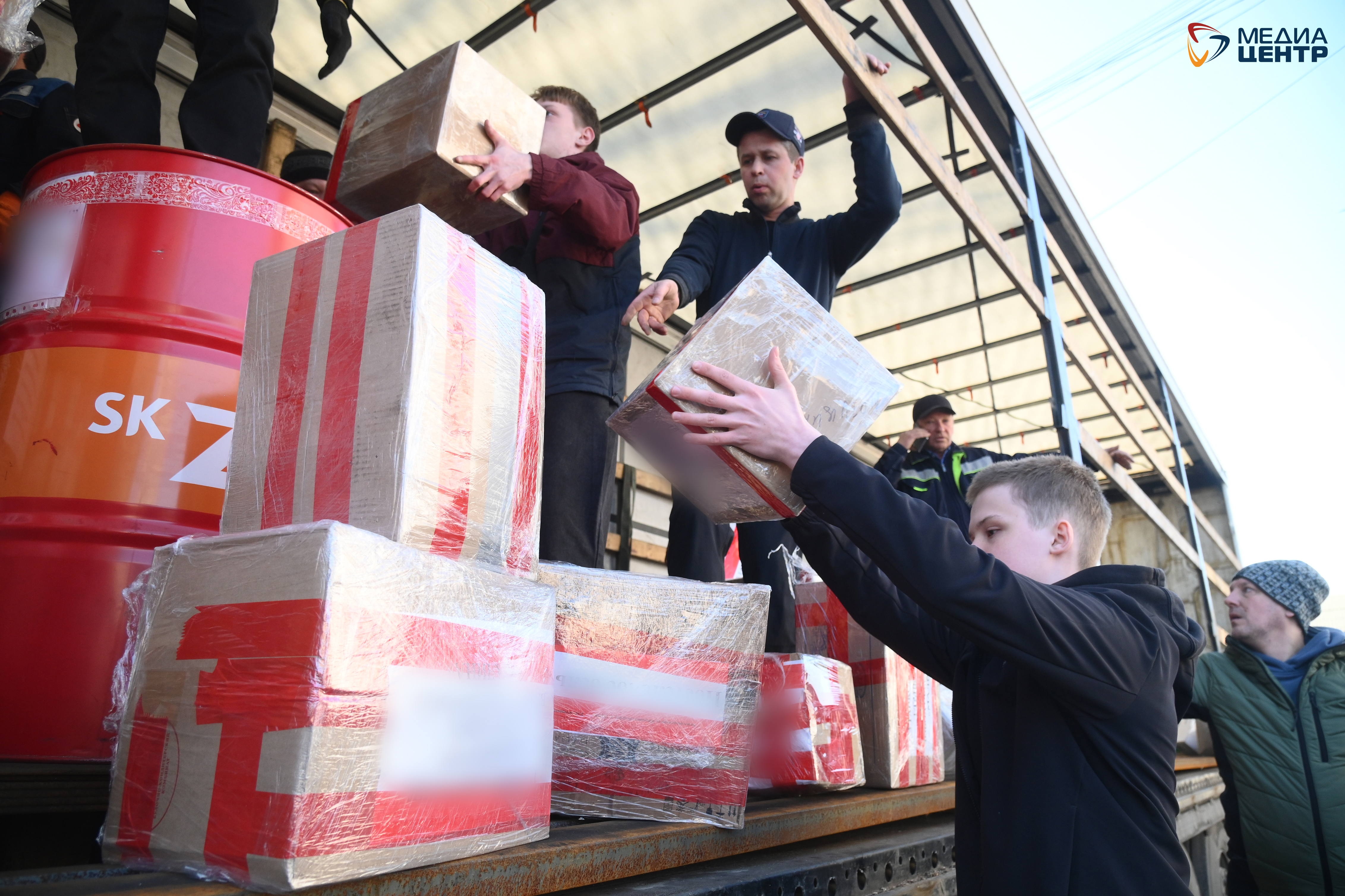 Улица Комарова, 4. Этот адрес объединяет тех, кто искренне переживает за судьбу военнослужащих — участников СВО. Отсюда на протяжении полугода в зону проведения специальной военной операции в 20-х числах каждого месяца отправляется гуманитарный груз, который собрали череповчане и бизнес-сообщество. Мартовская отгрузка выпала на 25-е число. К десяти утра фура уже стояла на месте, а волонтеры старательно укладывали в нее множество разноформатных посылок.