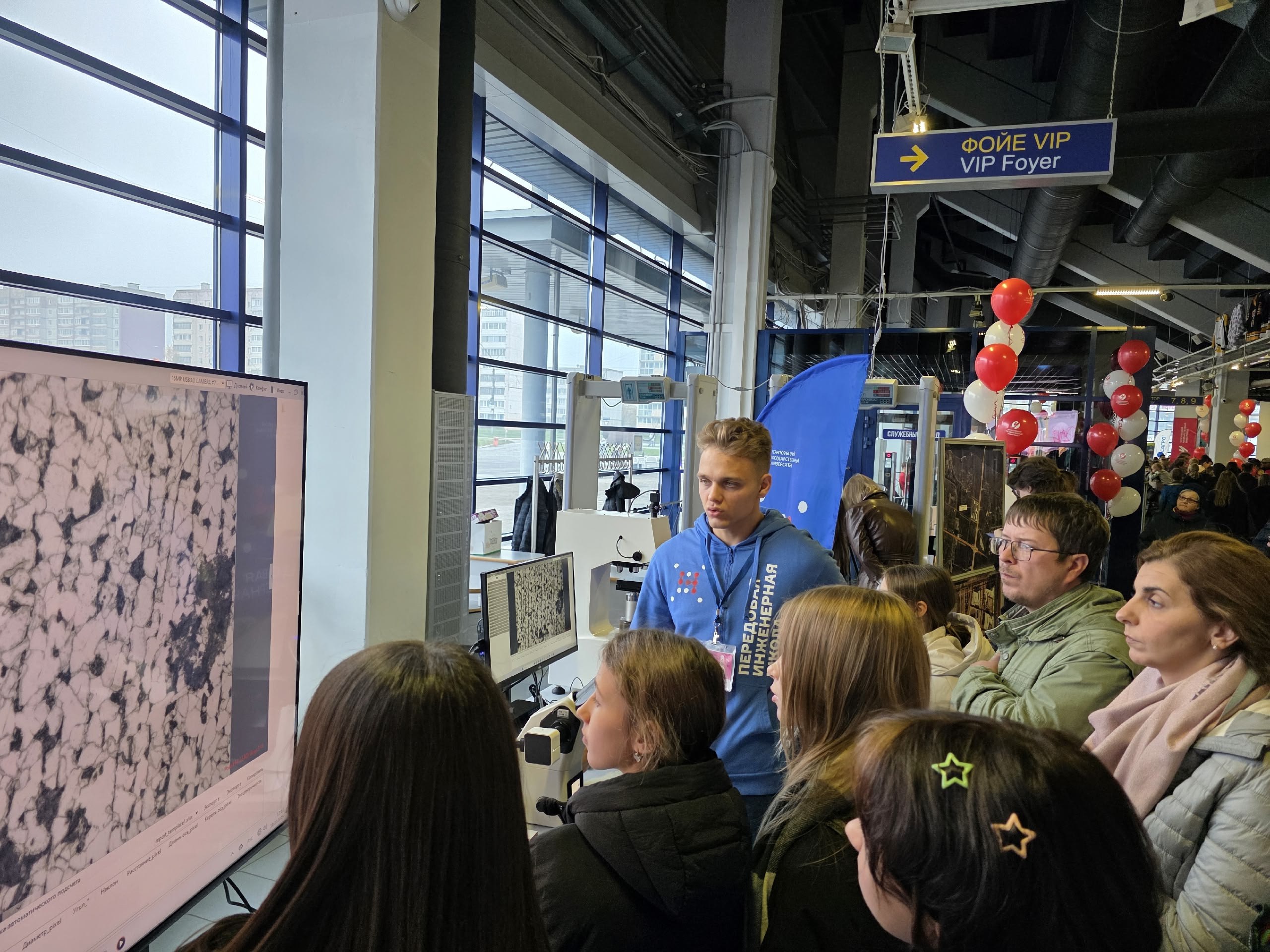 Фестиваль науки Вологодской области, который проходит при поддержке «Северстали». Стенд компании привлекает внимание юных исследователей.